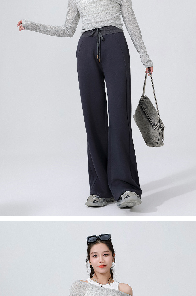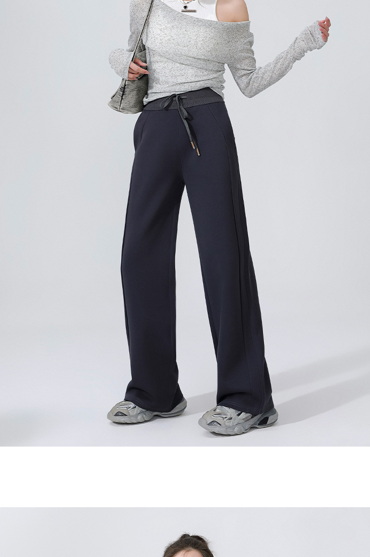 空气层直筒阔腿裤女秋冬新款简约时尚抽绳百搭休闲运动灰色卫裤子
