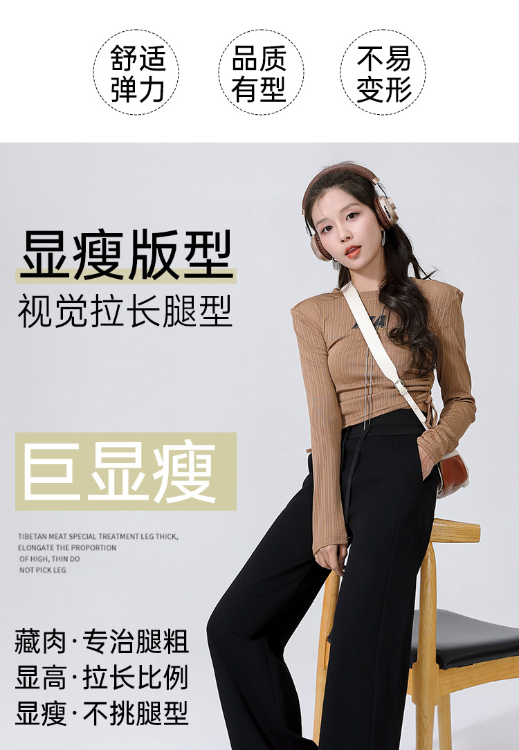 秋冬新款舒适顺垂感直筒空气层阔腿休闲裤高腰显瘦藏肉通勤裤百搭