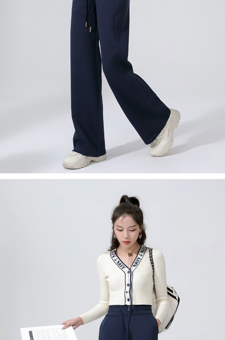 女式直筒阔腿裤透气棉感面料高腰设计遮胯双侧口袋通勤日常百搭裤