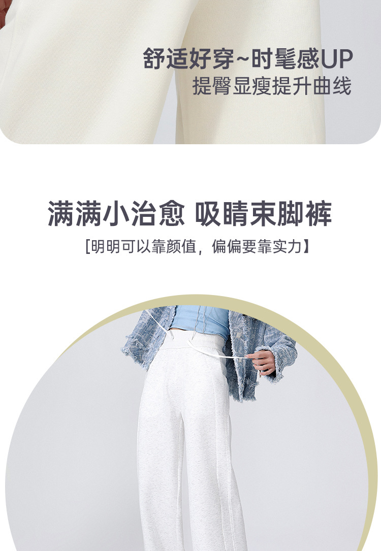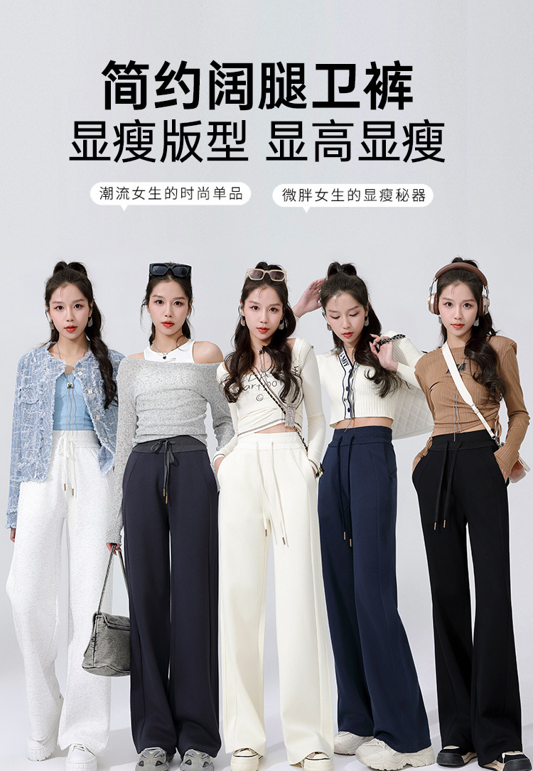 秋季新款休闲直筒裤女慵懒松弛感高腰显瘦垂顺软糯宽松外穿运动裤
