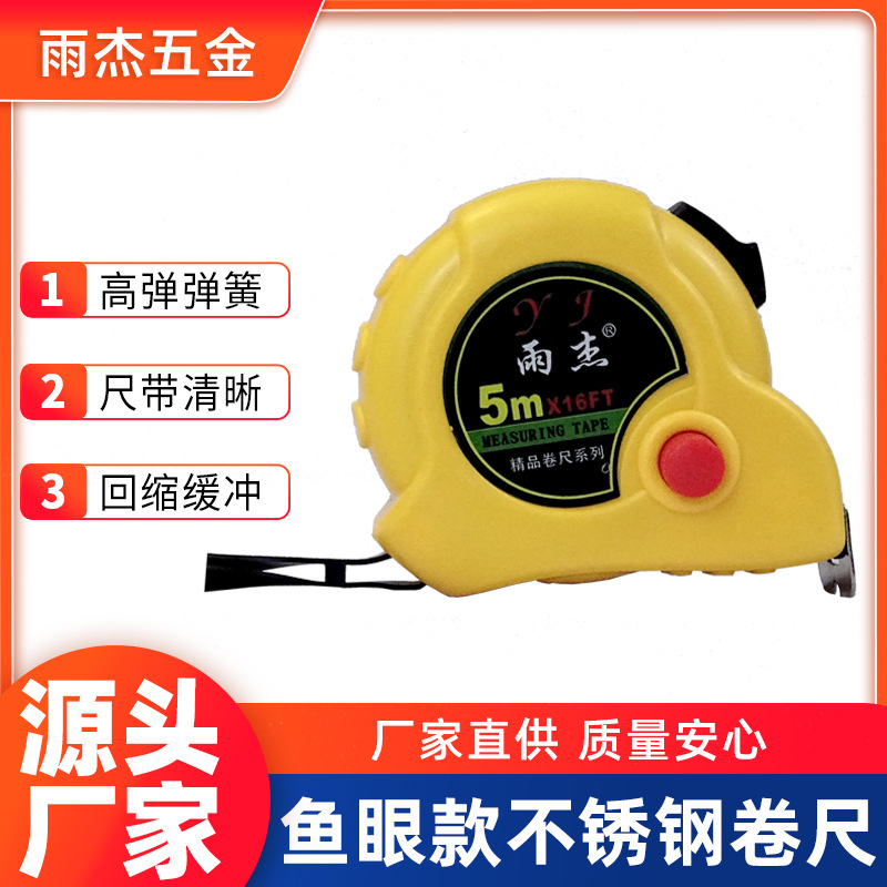 メーカー卸売りステンレス鋼5メートル耐落下鋼巻尺工事現場プラスチック5メートル箱尺魚眼金鋼巻尺