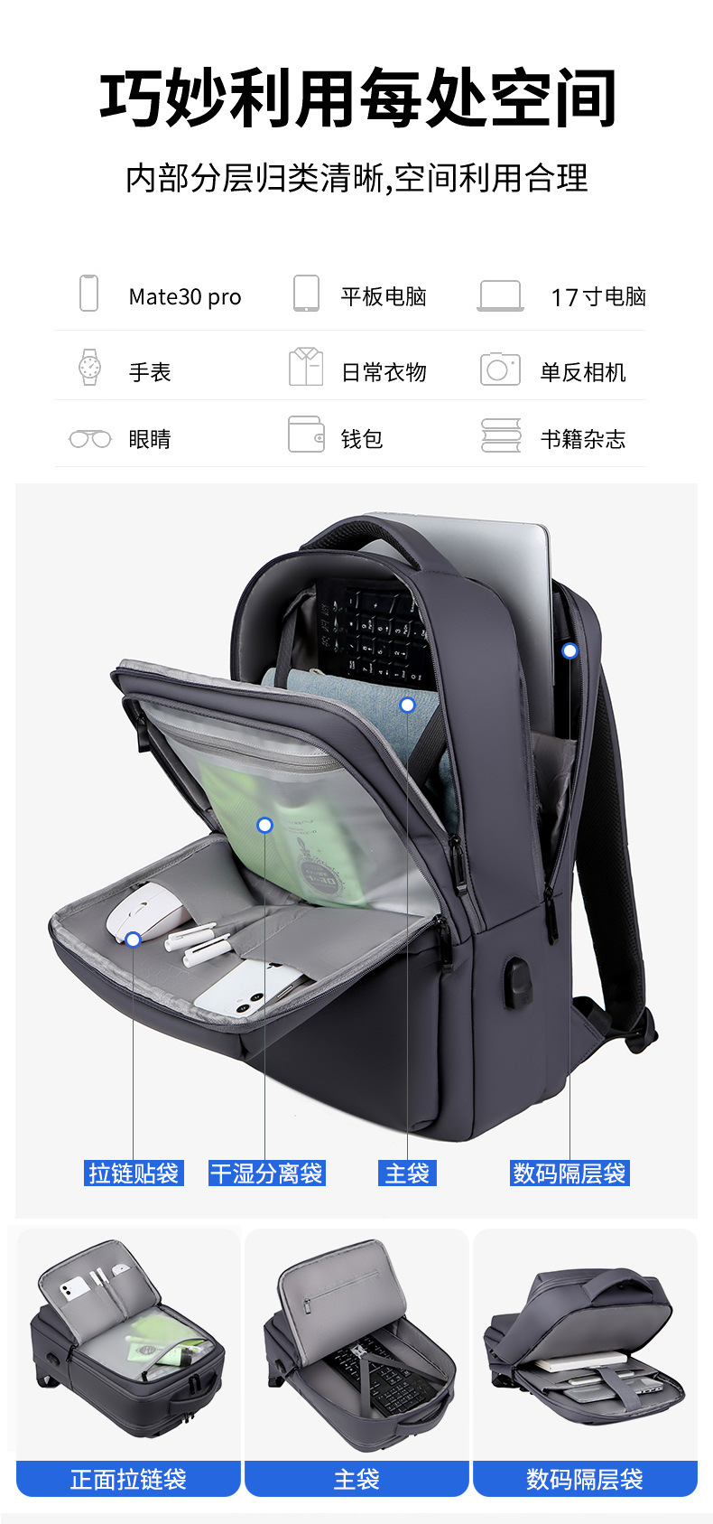 クロスボーダーメンズ大容量リュックサックファッション旅行レディースリュックサックファッション高级感防水パソコンバッグ通勤かばん