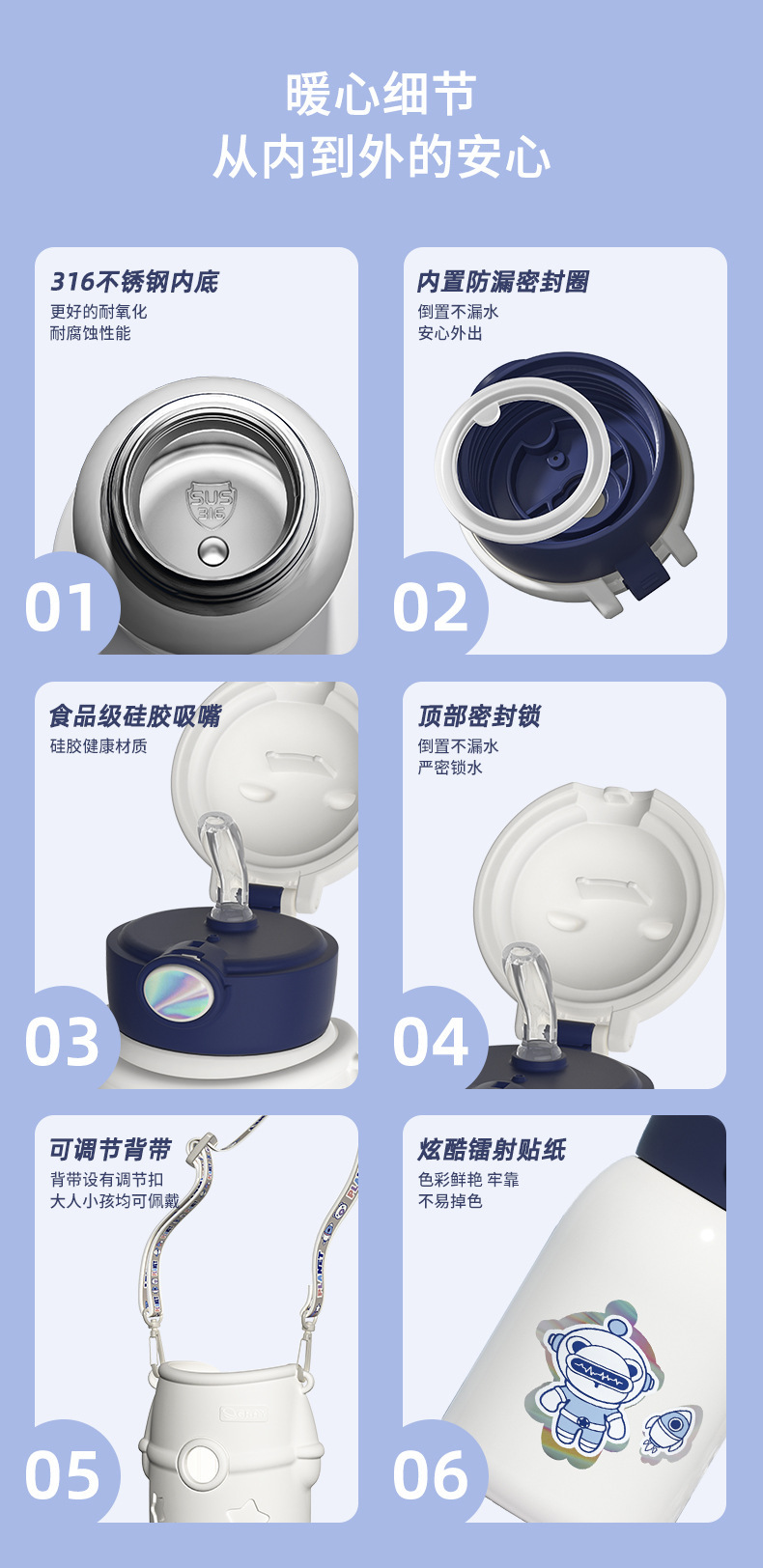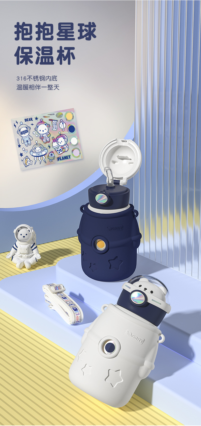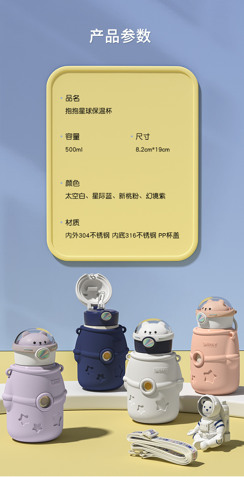 宇宙飛行士は星の子供304ステンレス保温カップを抱いています。