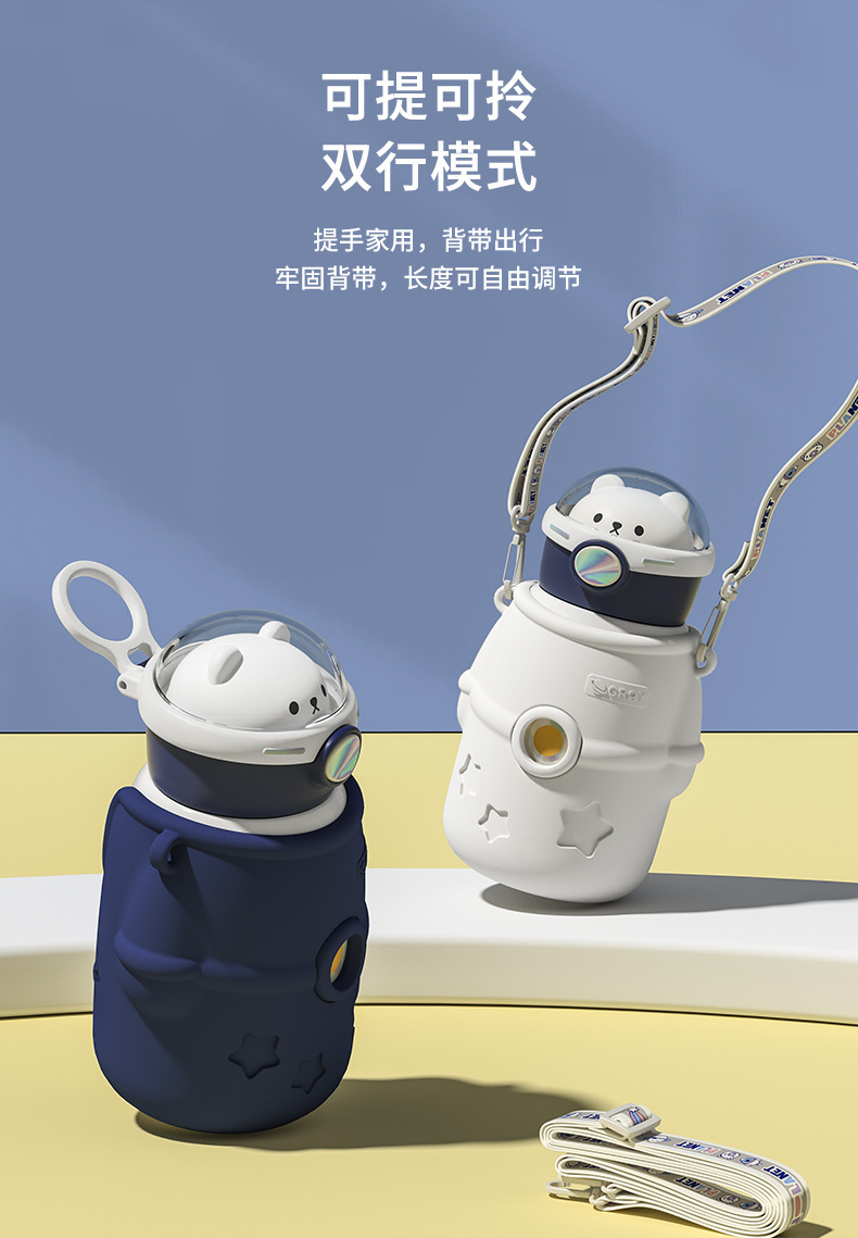 保温杯简约带背带学生儿童水杯女生新品户外饮水杯高颜值便携杯