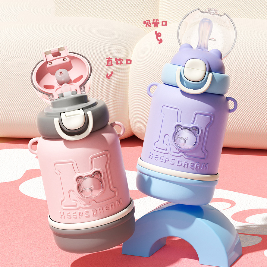 小茶日記子供保温コップ316ステンレス水筒大容量男子女子転倒防止ストローコップ学校