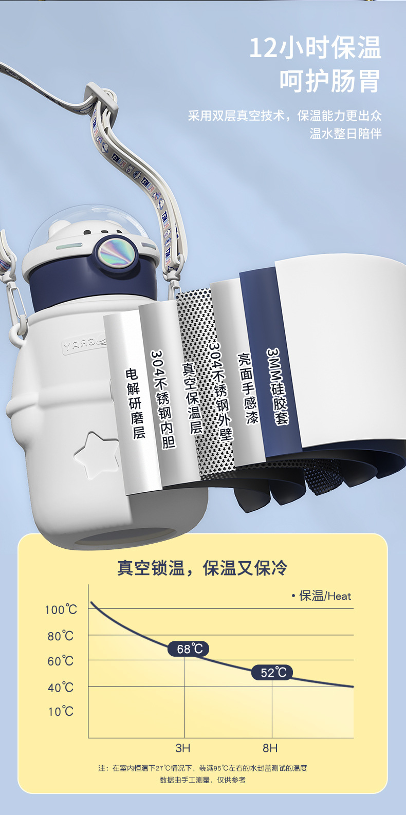 秋冬用保温カップ、携帯用大容量子供用水筒、学生女子向け304ステンレス製家庭用カップ、誕生日プレゼント
