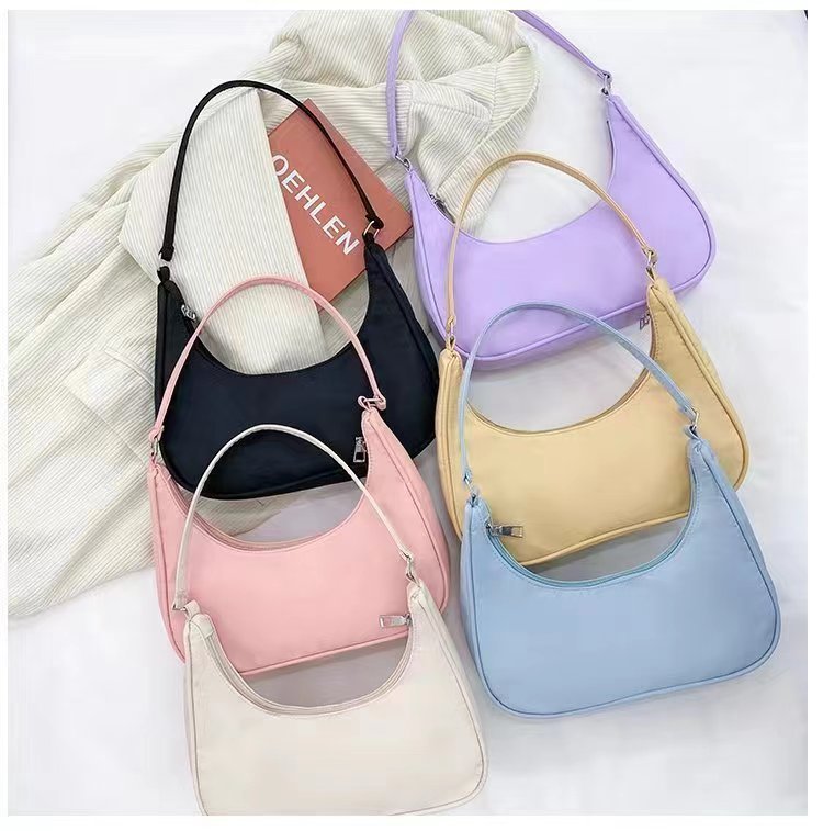 秋の新型バッグ女性ファッション餃子バッグファッションバッグナイロン純色シングル肩脇下バッグ