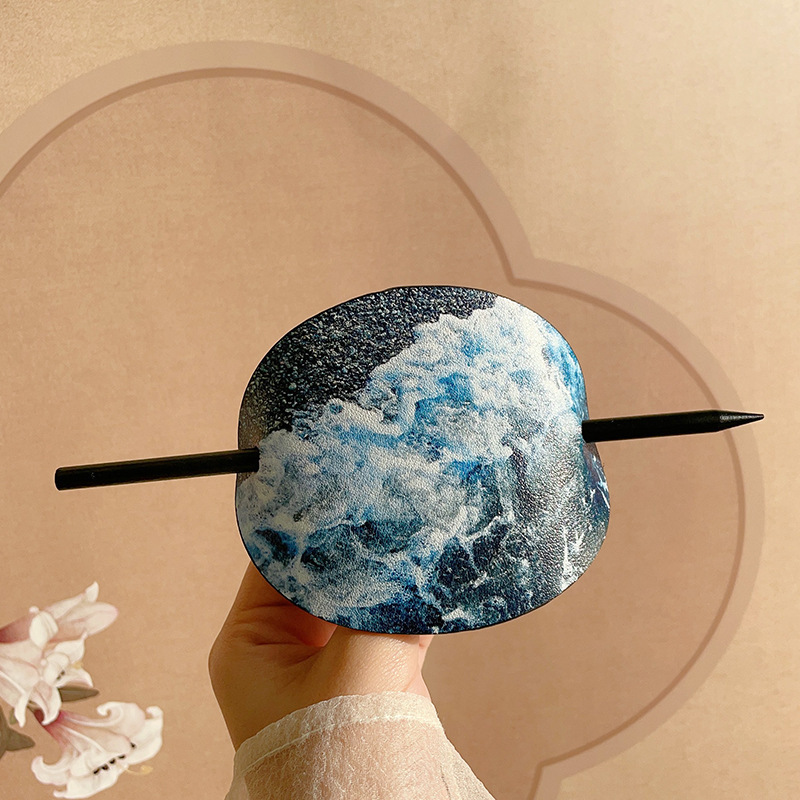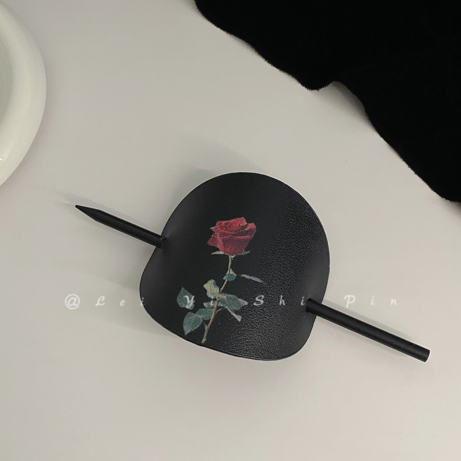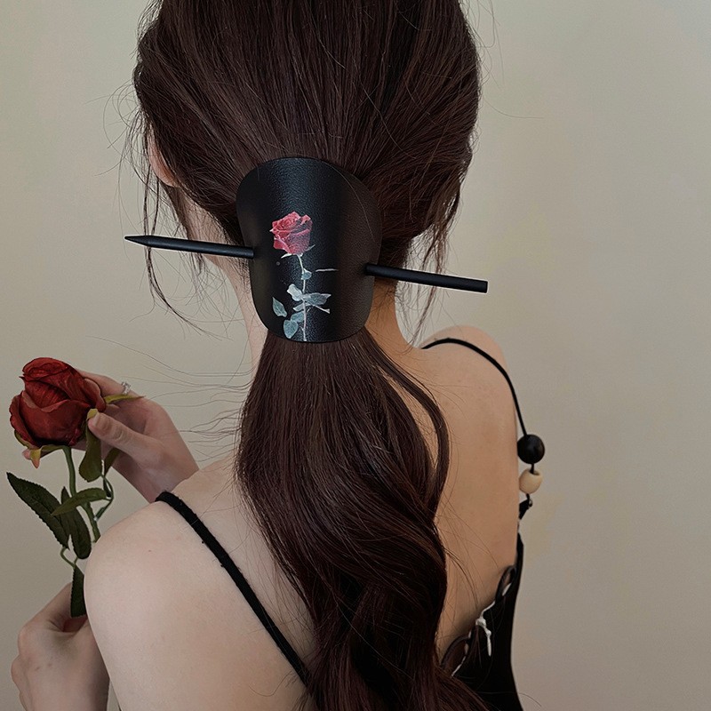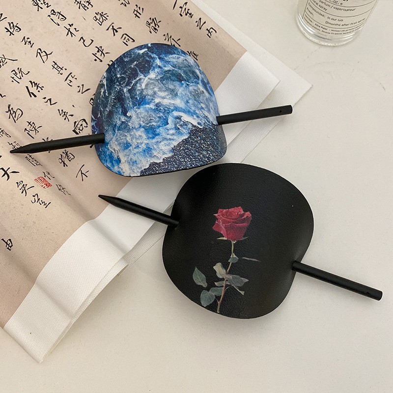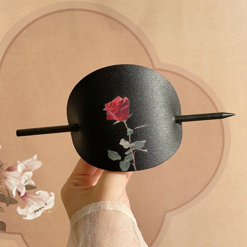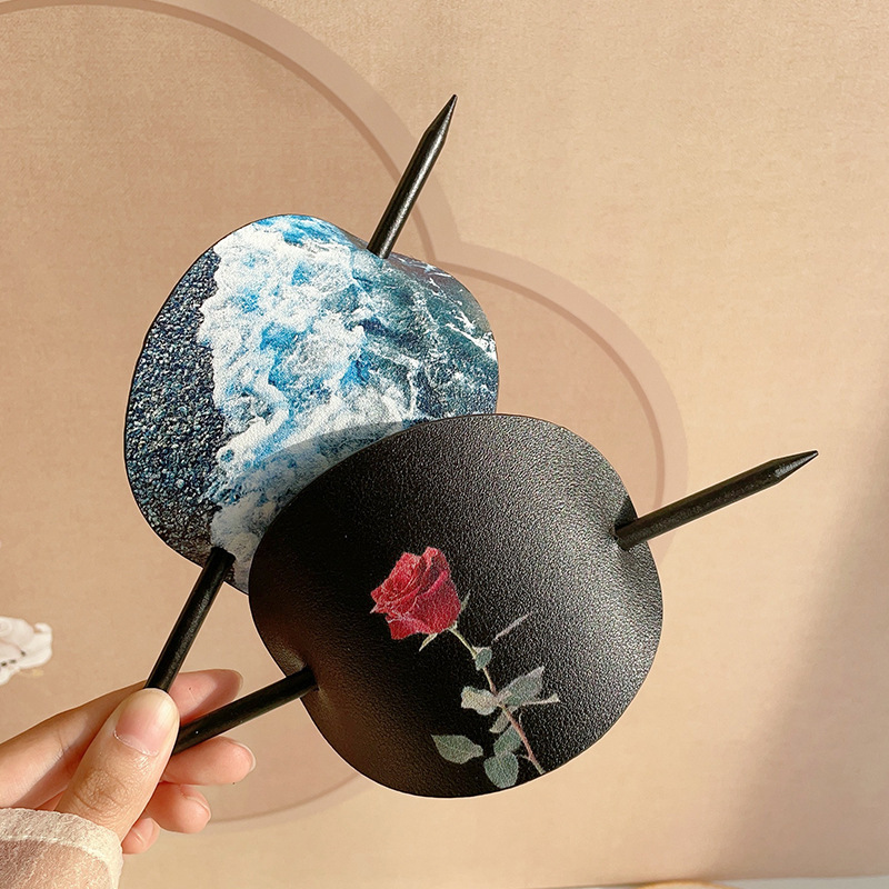 新中国式高級感皮革プリントバラ波ヘアピン小大衆デザイン感流行ヘアピン女
