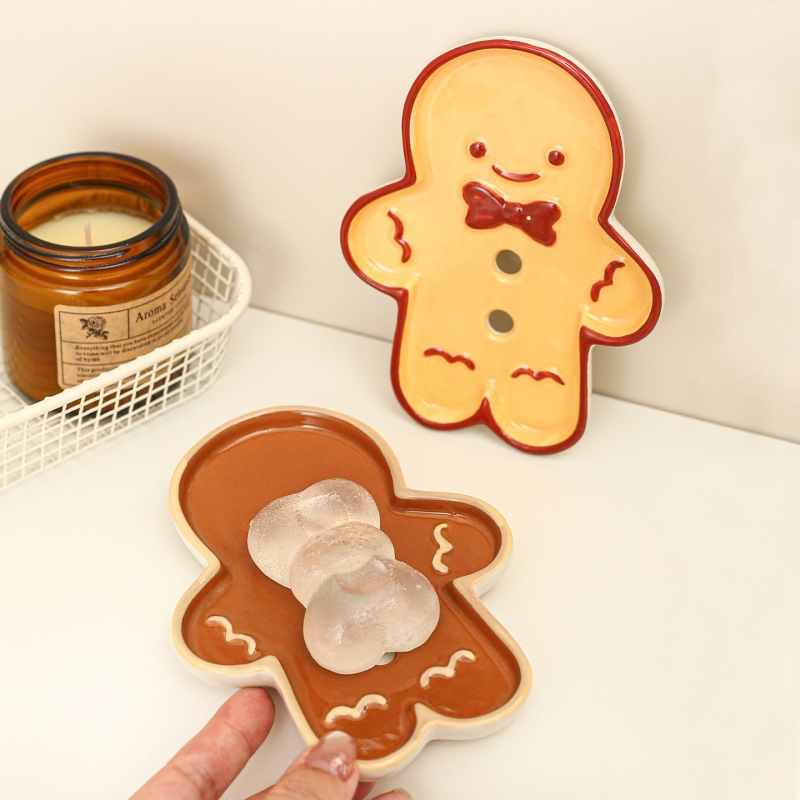新款姜饼人陶瓷肥皂蝶萌趣带沥水功能肥皂盒礼盒装生日礼品香皂盒