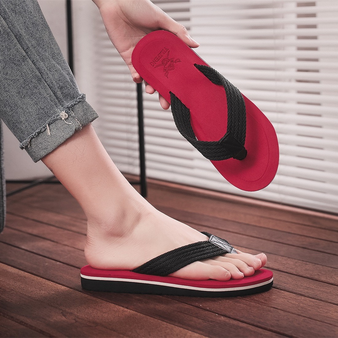 カップルスタイルソリッドカラーフリップフロップ厚底男性と女性のスリッパ夏通気性大型滑り止めデザインファッションソフト底