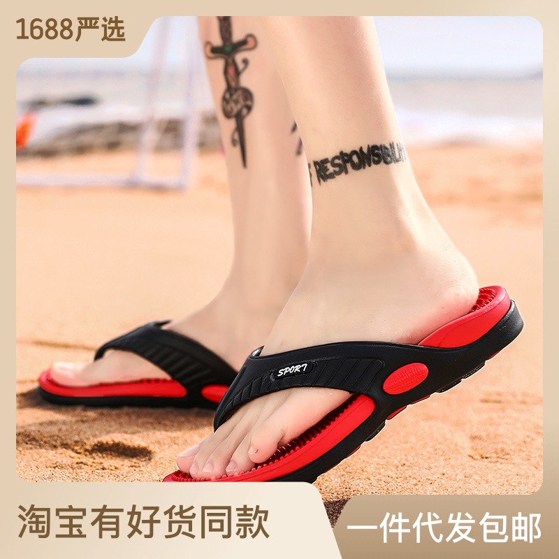 特大サイズ 46 クロスボーダー通気性ビーチシューズマッサージボトムビーチサンダルメンズスリッパ一言サンダル外国貿易サンダル