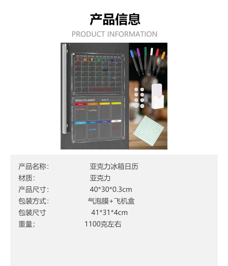 TYU049 立体磁気アクリルウィークリープランマンスリープランノートメッセージボード消去可能な磁気冷蔵庫マグネット