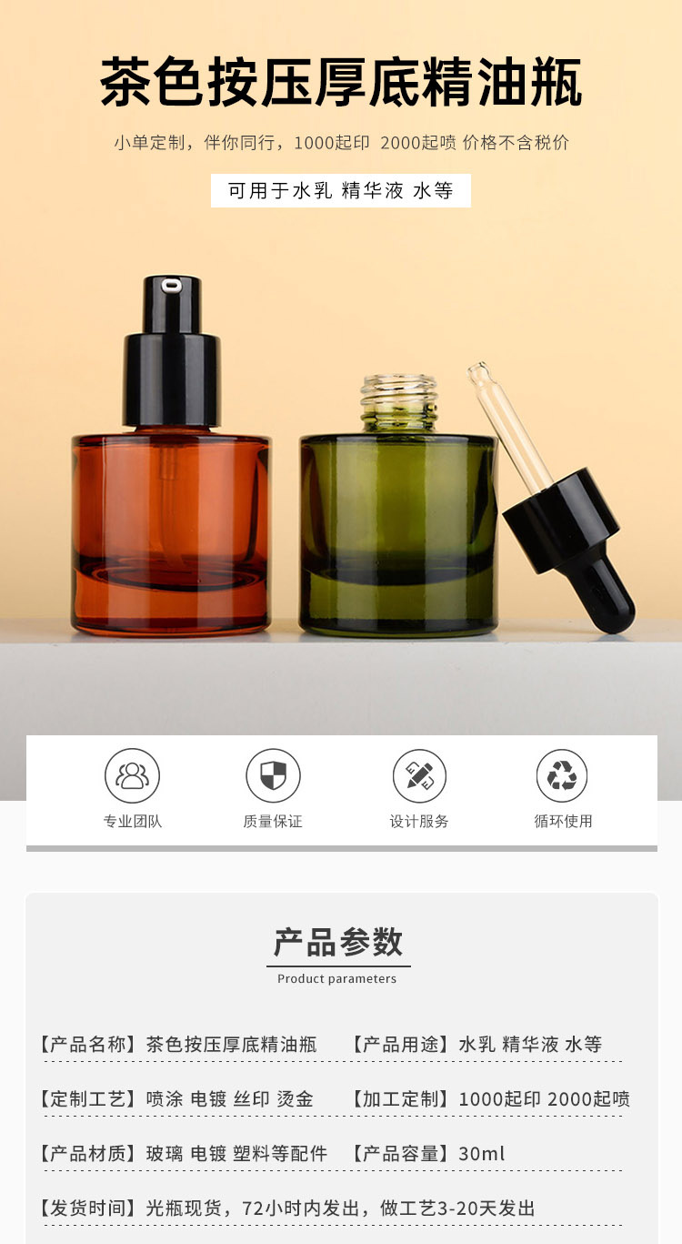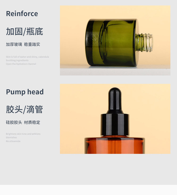 厚底50ml滴管瓶空瓶30ml精油分装瓶多款式化妆品玻璃瓶20ml原液瓶