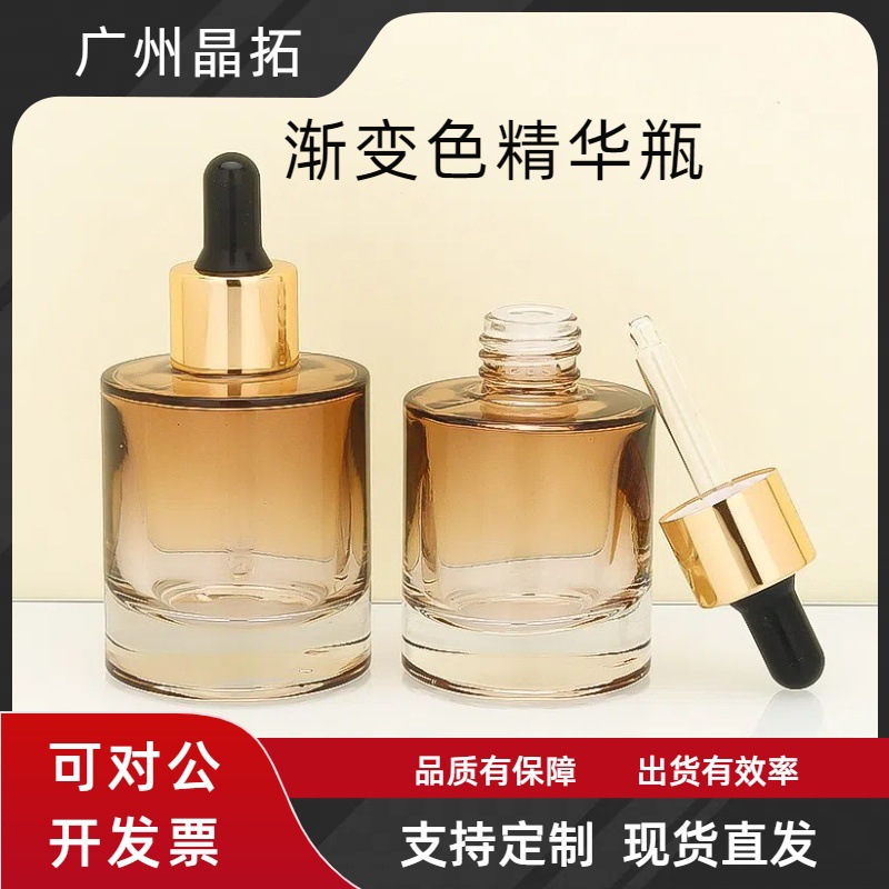 广州晶拓玻璃滴管瓶30毫升渐变色平肩滴管精华液瓶厚底精油瓶批发