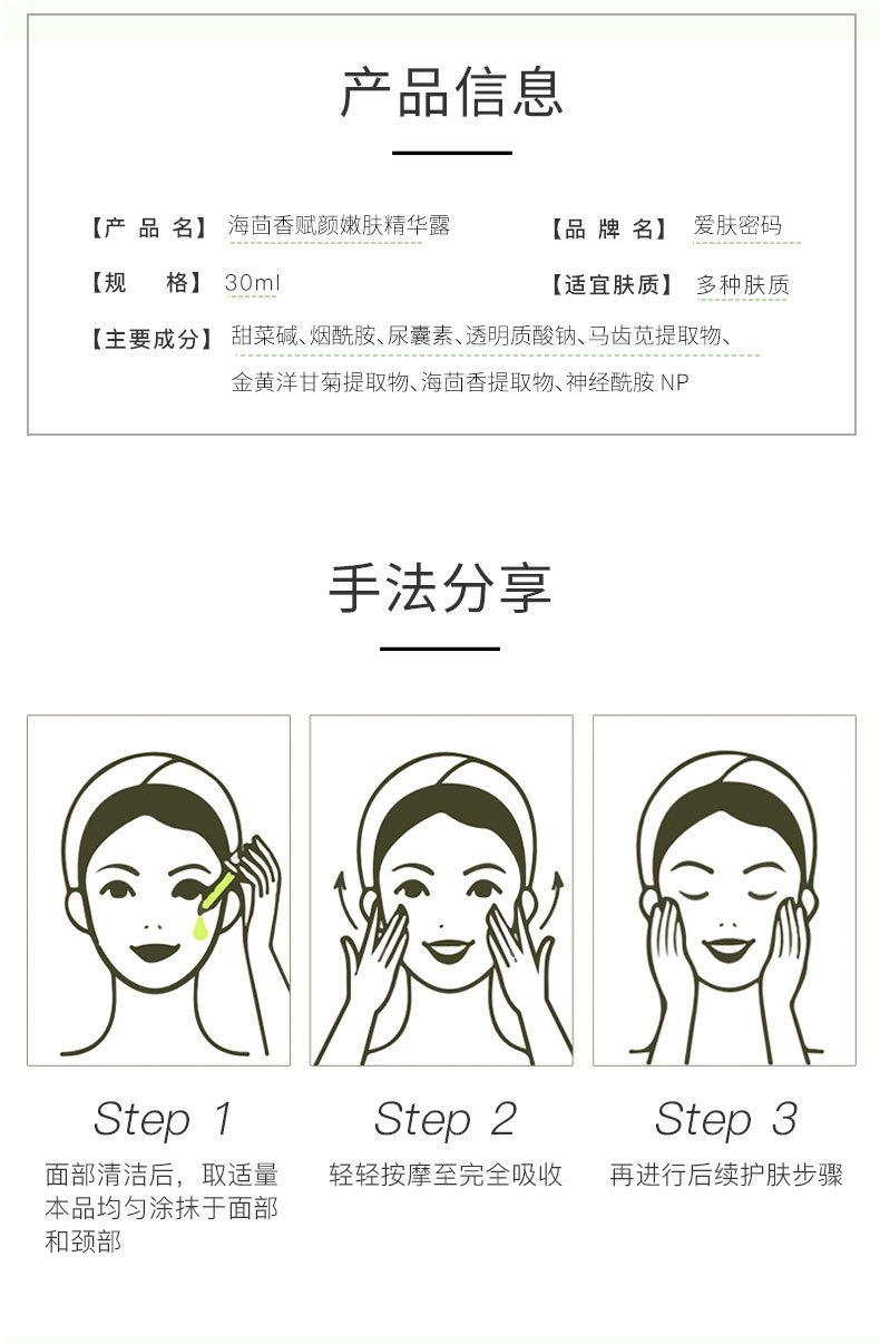 製品名 愛の肌のパスワードの海のウイキョウの香りは顔の柔らかい肌の精華の露を与えます。