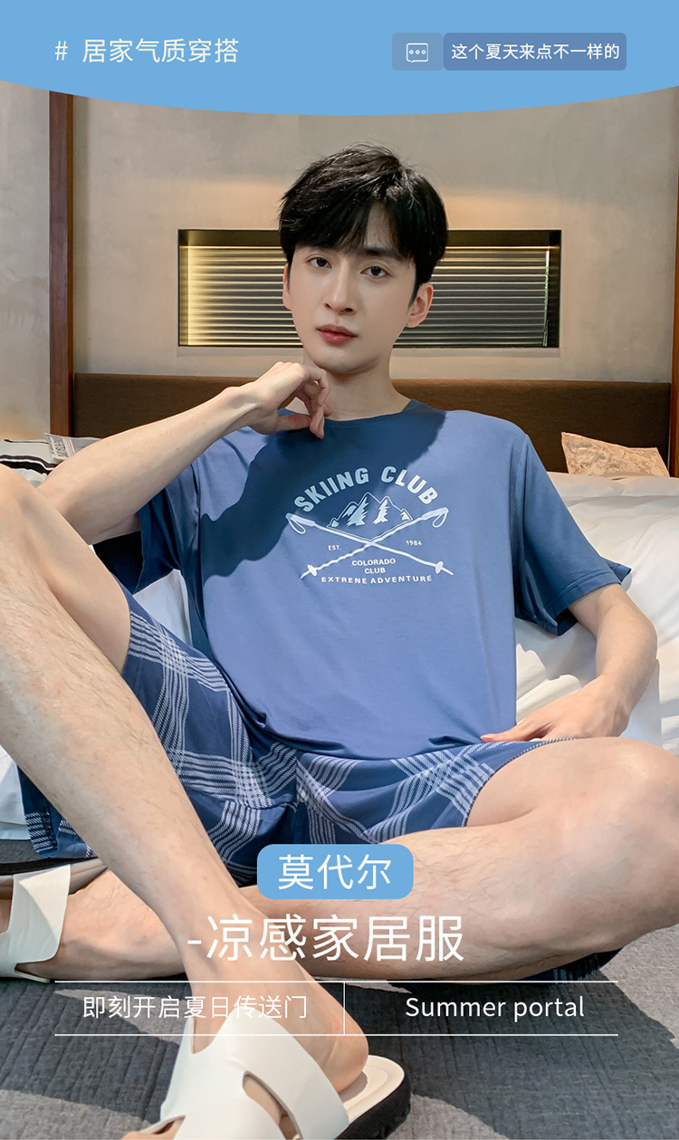 モーダル男性パジャマ男性夏2024年新半袖氷糸薄手夏タイプホームウェア夏スーツ