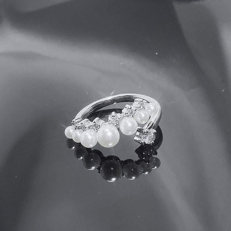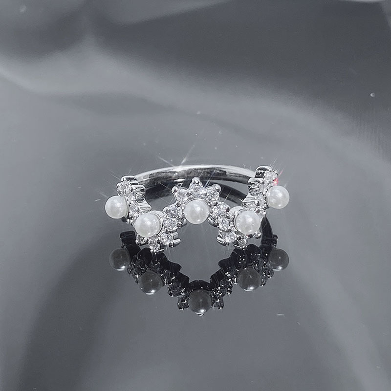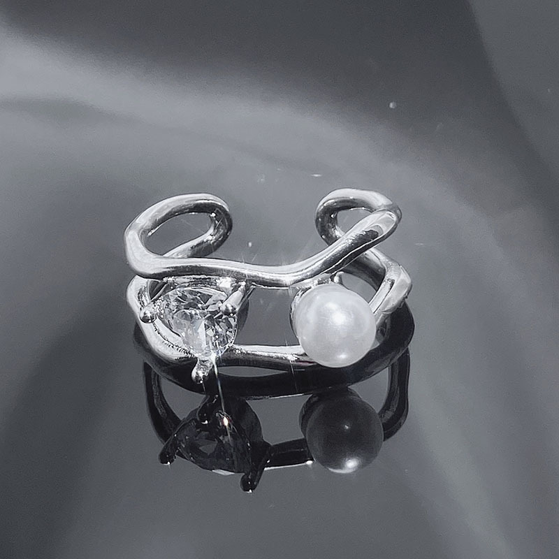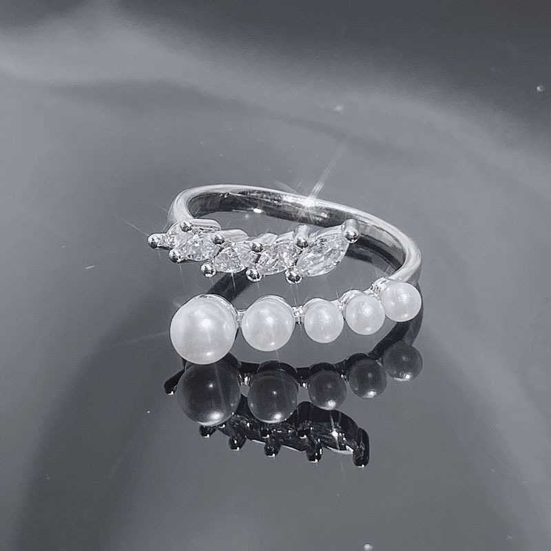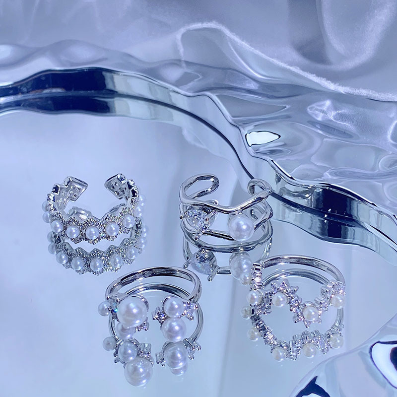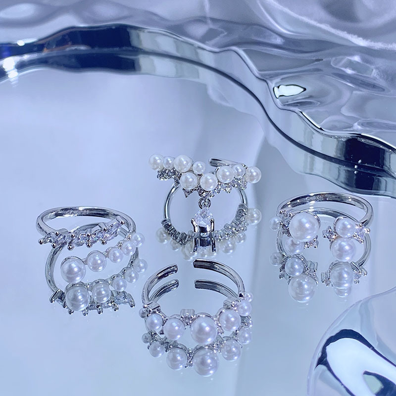 フレンチ優しい秋冬コーデオープンパールリングins冷淡风ファッション百合高级感小众指轮
