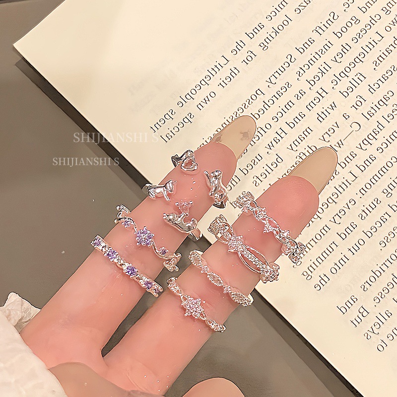 「芒星捧钻」韩版简约ins风捧花点钻系列开口戒指女小众百搭指环