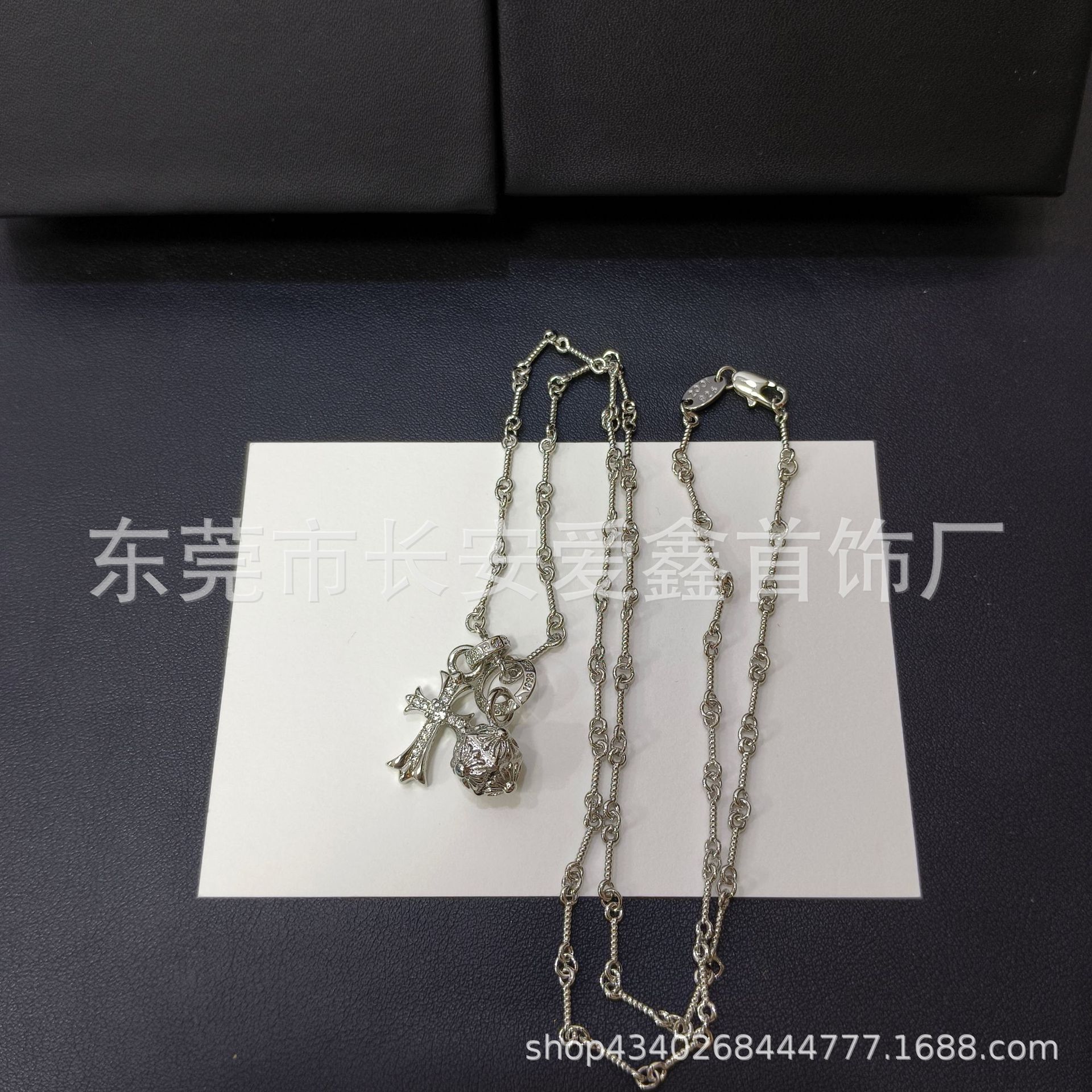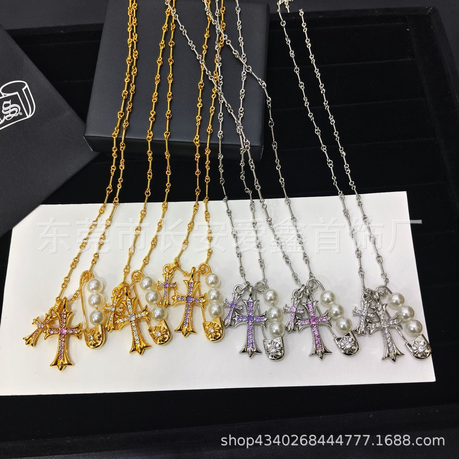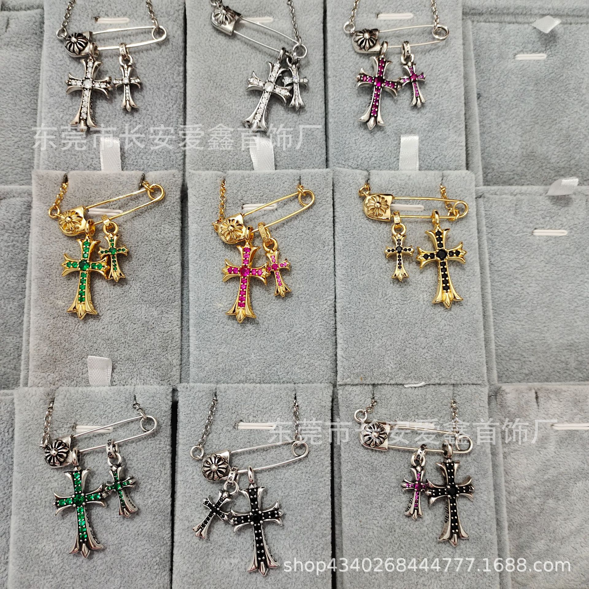 克罗伈三件套别针双十字架吊坠项链欧美穿搭潮流嘻哈男女百搭项饰