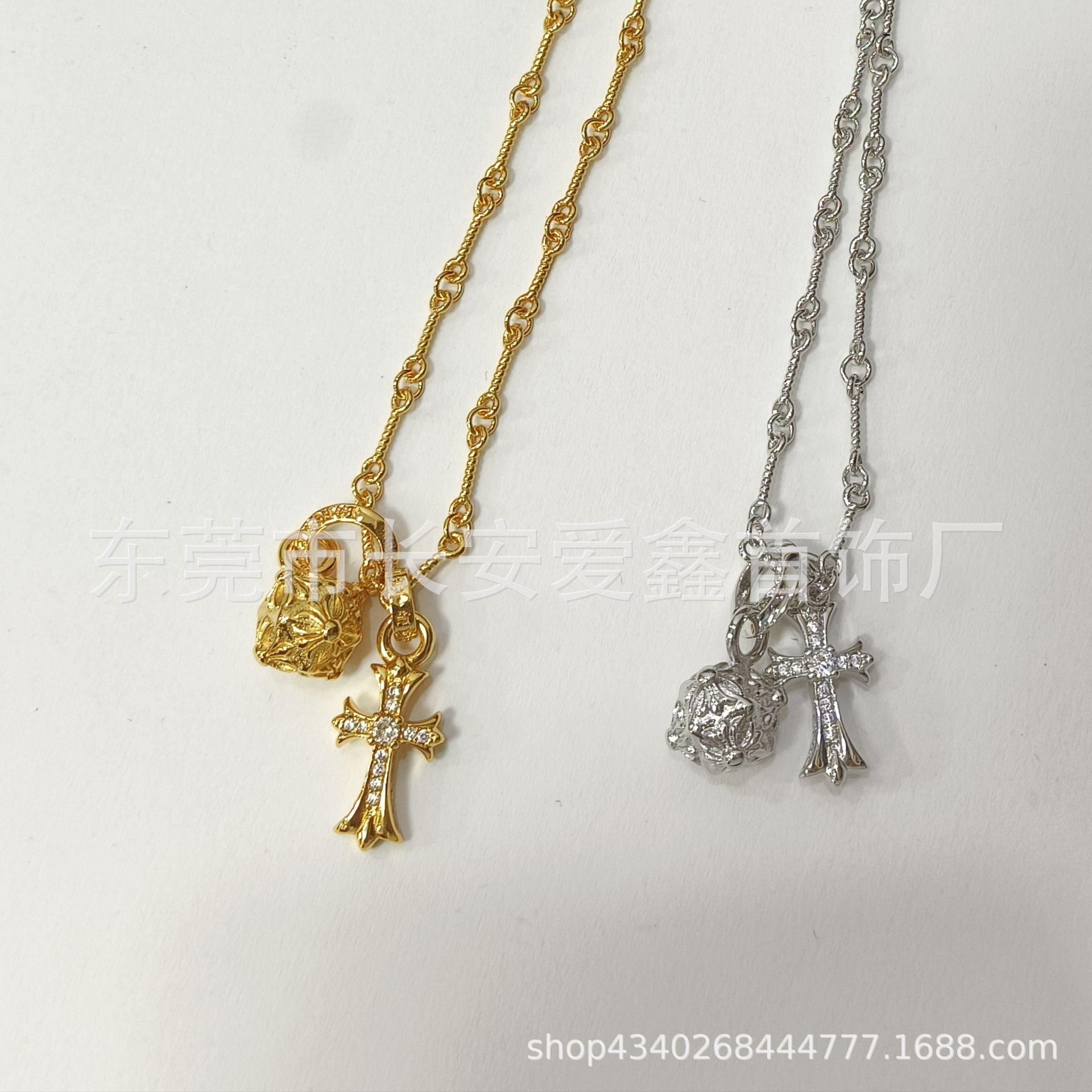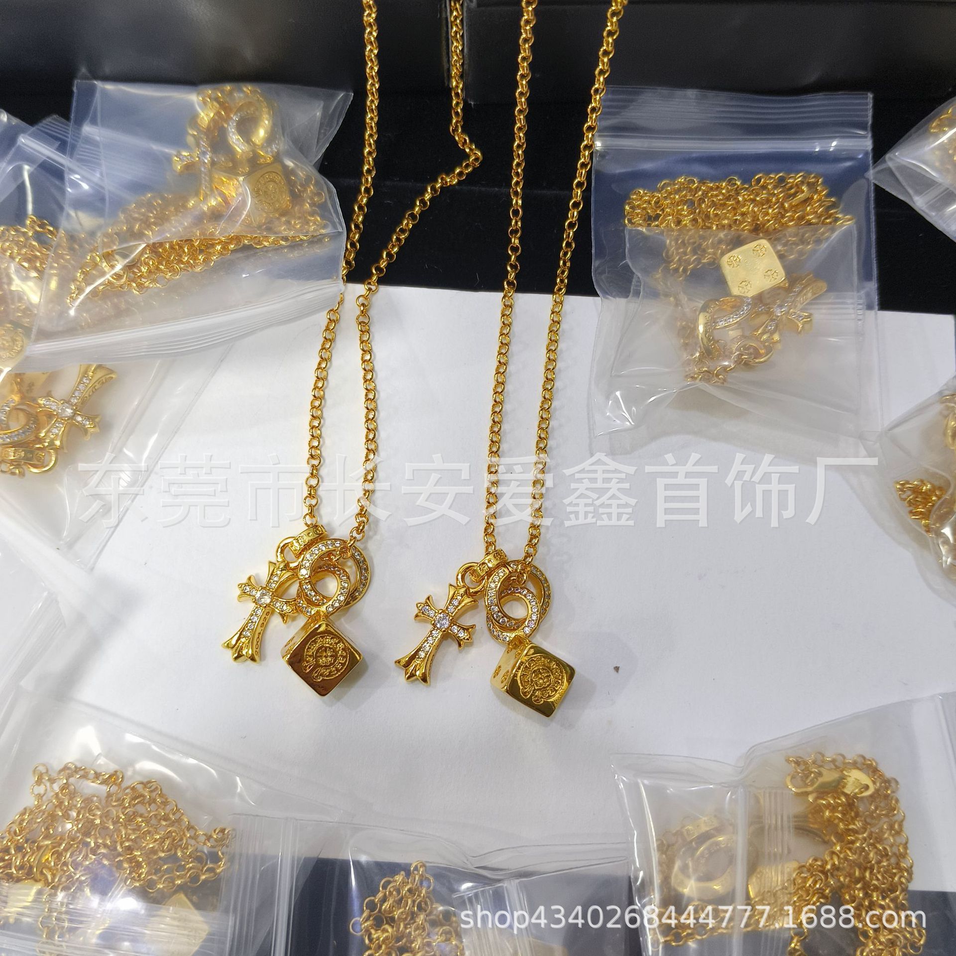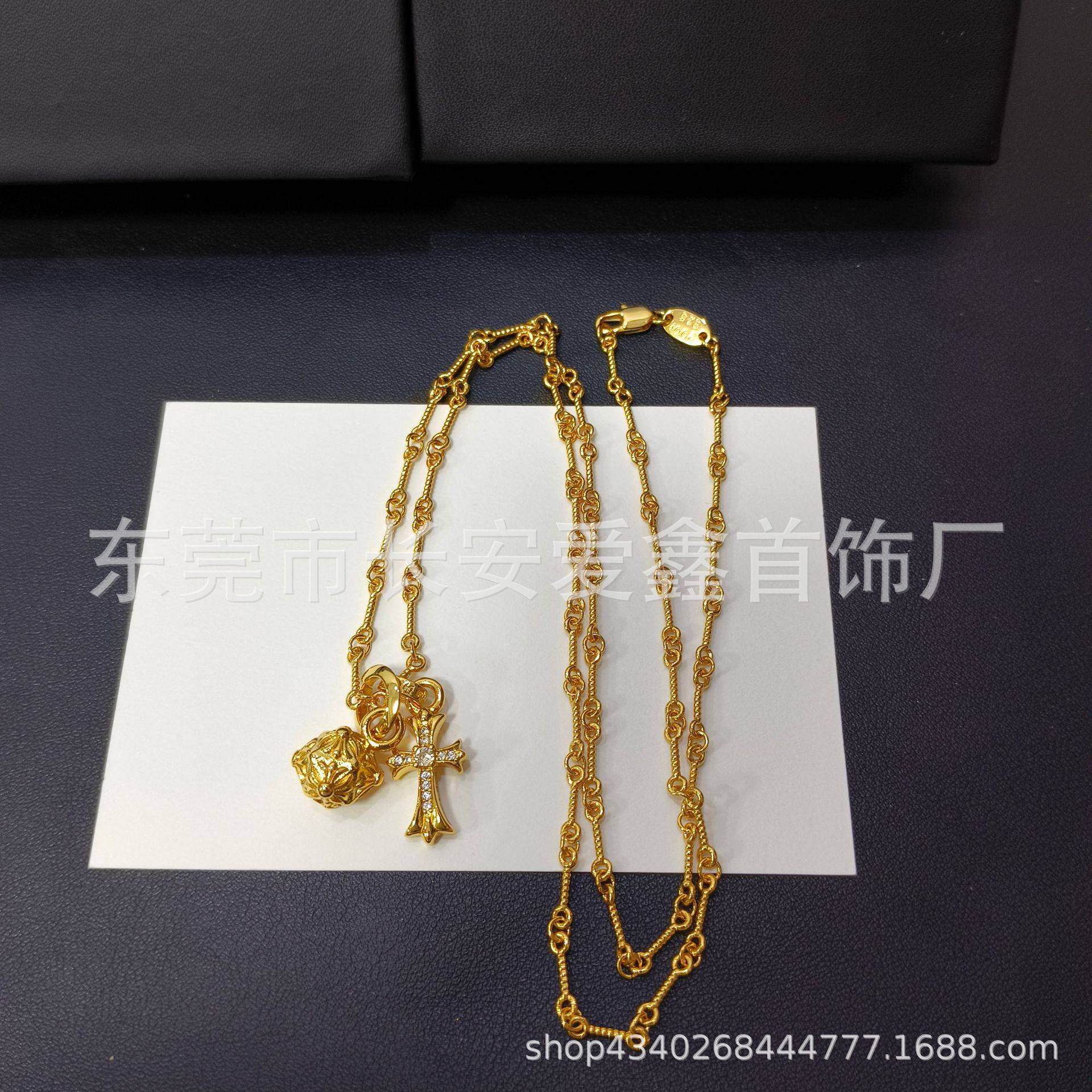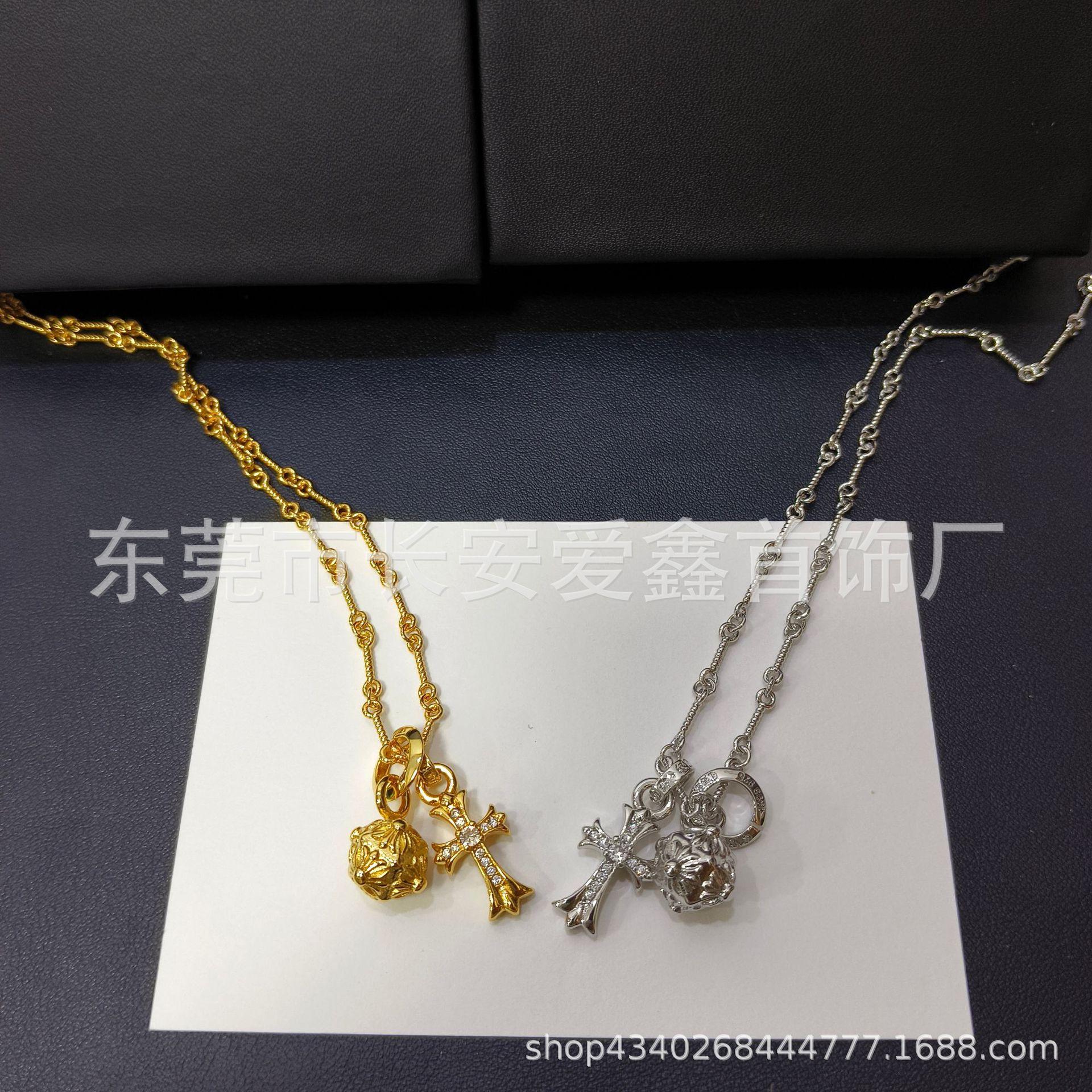 クロクロの新作の金色のダイヤモンドの十字架のネックレスの潮流の個性のファッションの男女の百合の甘いクールなギャルの装飾