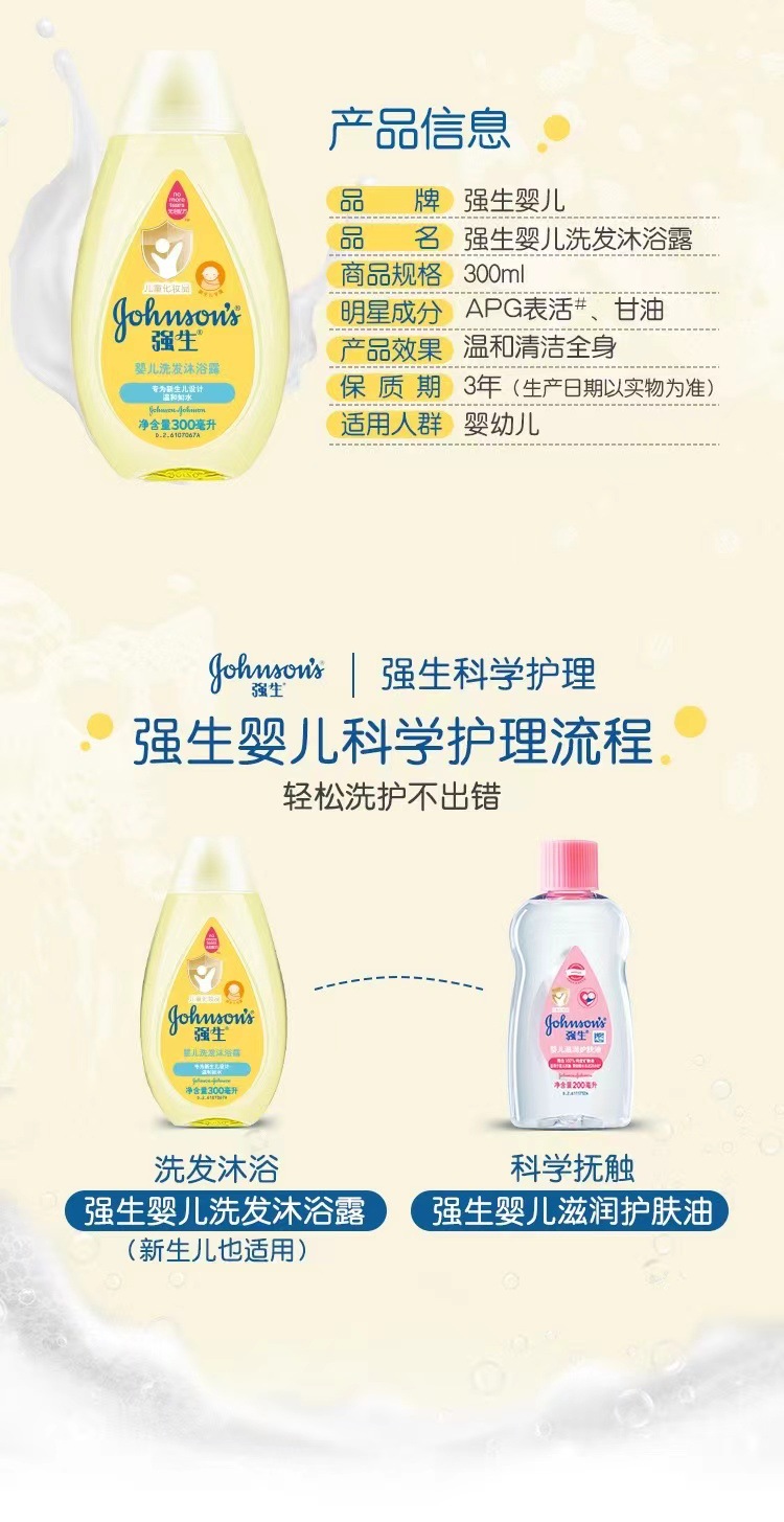 强生婴儿沐浴露温和洗护新生宝宝用清洁洗护沐浴液300ml500ml