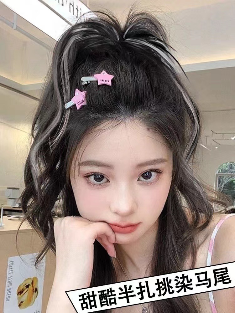 滝の半分は高い馬尾を刺して長い巻き髪を染めます。自然でふわふわしています。