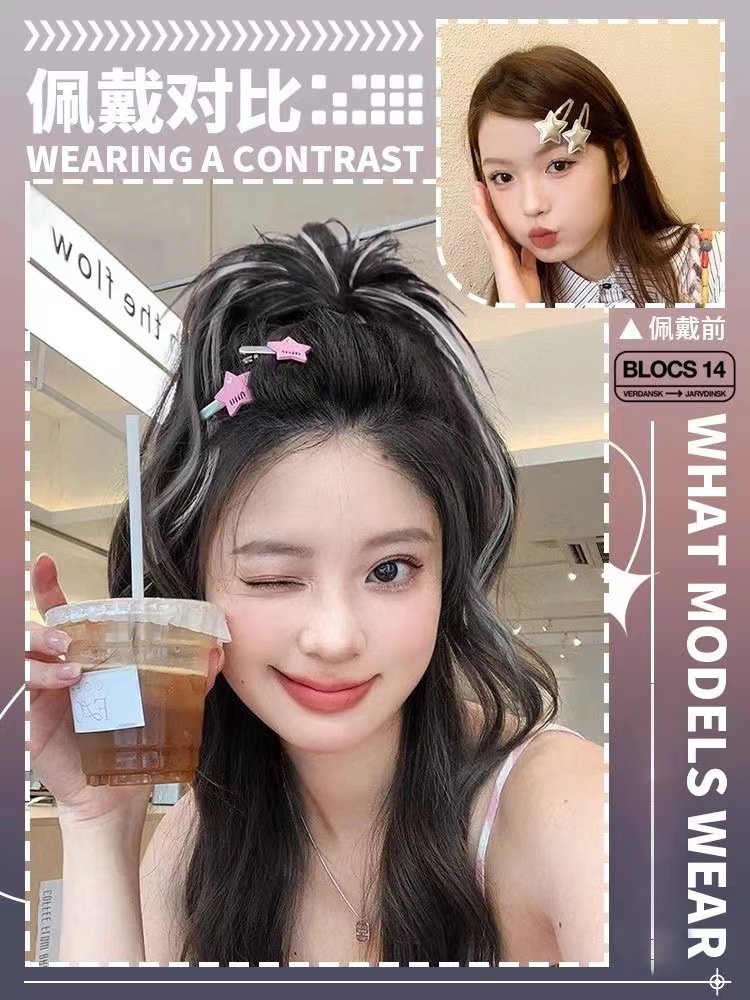 耳掛け染め付け毛ピース、ワンピース付け毛、ハイライト染め、セクシー女子、クール女子、ハイライト付け毛、エクステ、グラデーション