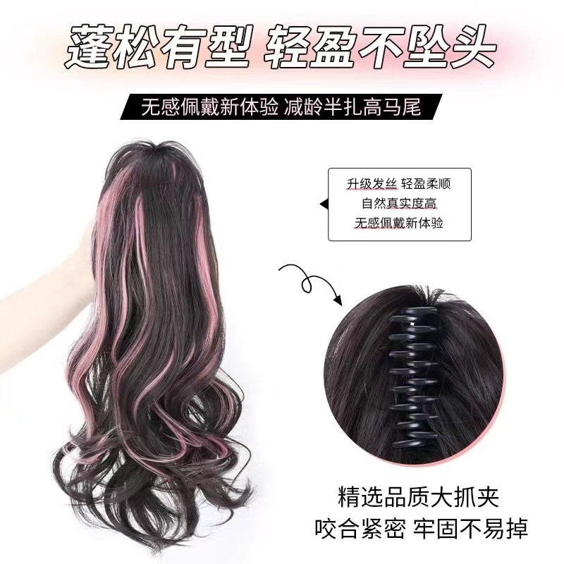 滝のような半分結ばれたポニーテールウィッグ 女性用 ふんわり増毛 ネットセレブ風 ロングヘア 編み込みヘアクリップタイプ ホットガール風 サラサラ高めのポニーテール