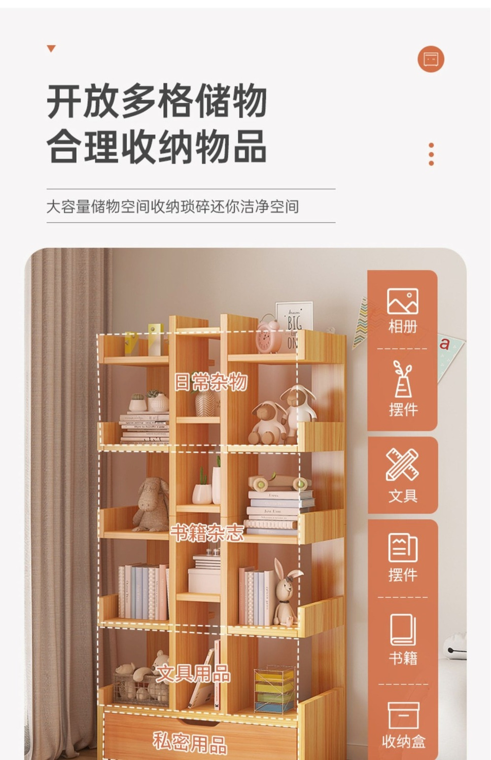 本棚が床に落ちた家庭用の多層本棚一体大容量置物収納棚雑物棚移動本棚