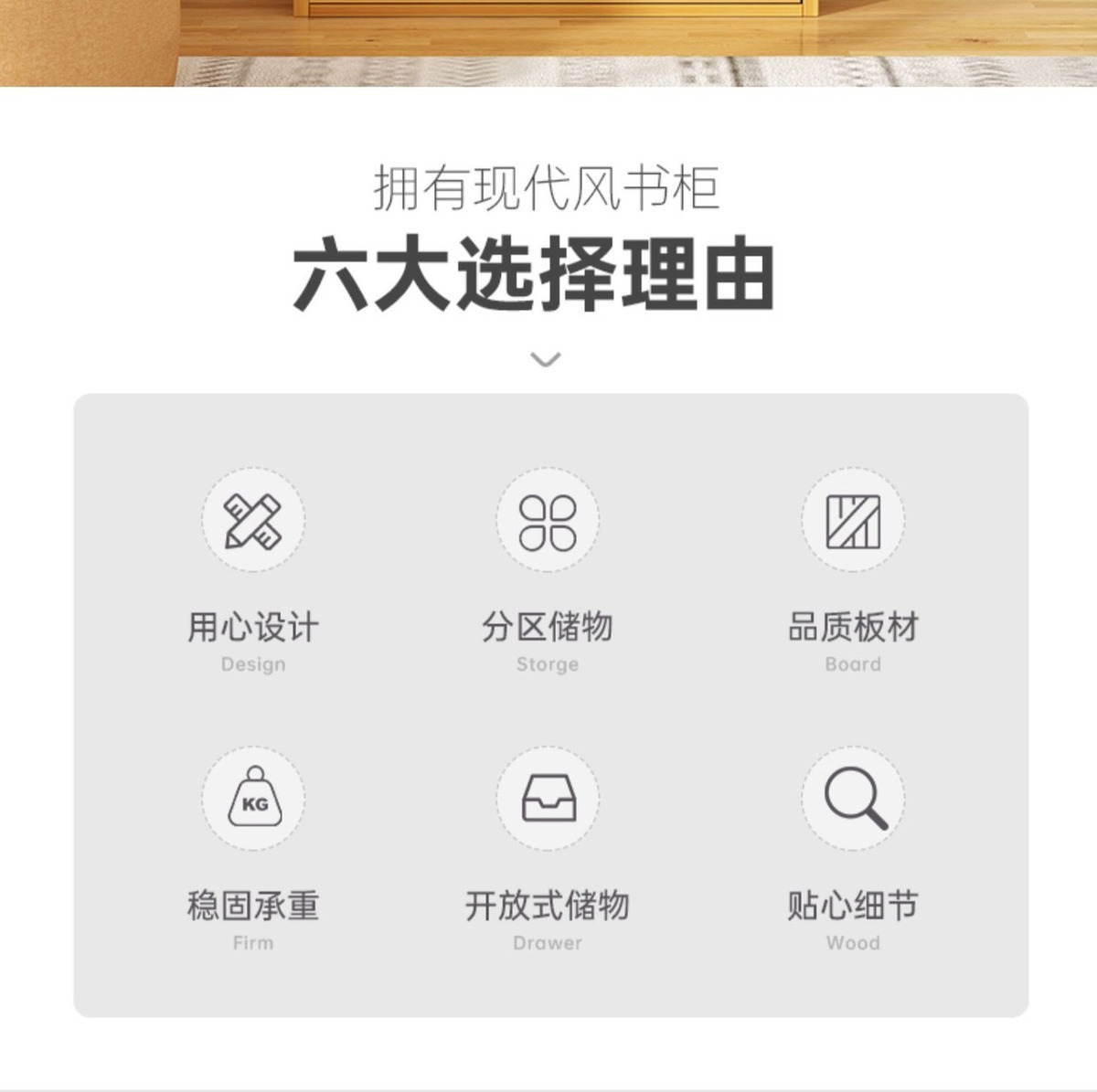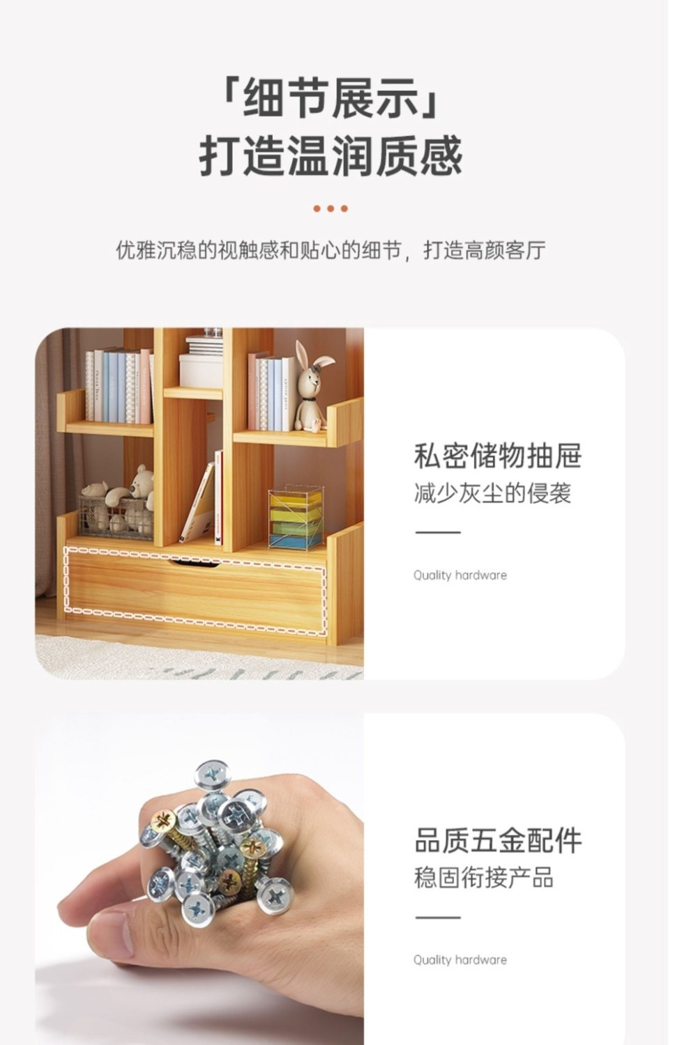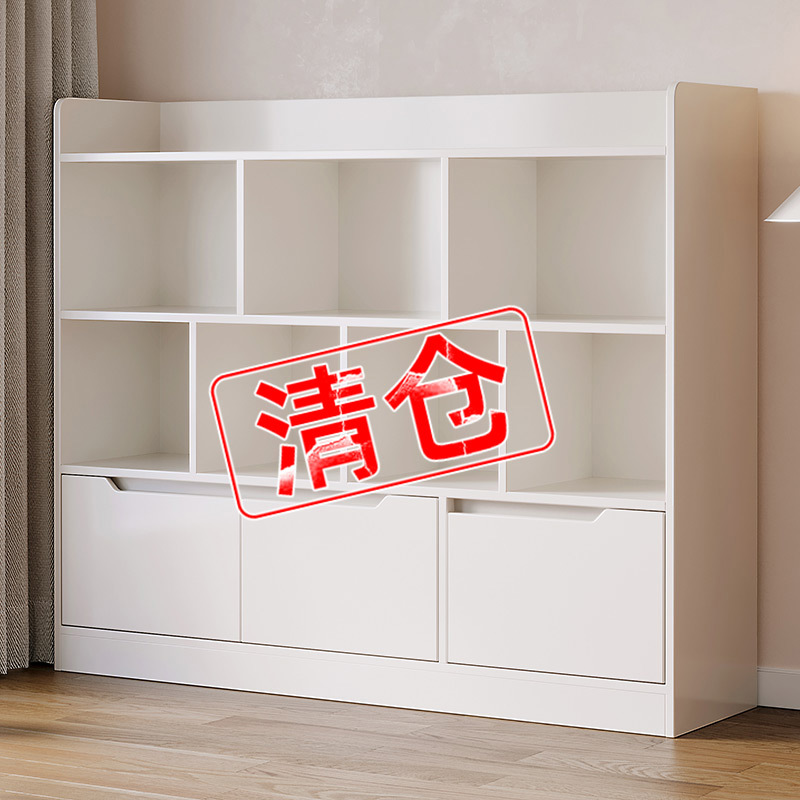シンプルな床置き本棚家庭用リビングルームの小戸型収納棚が一体になっています。