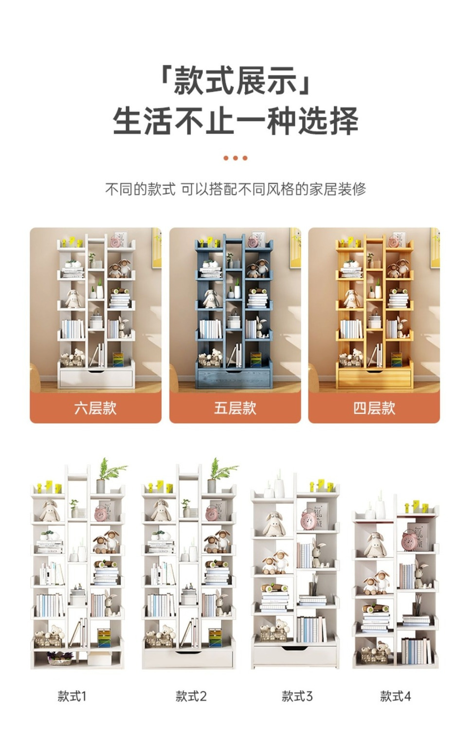 本棚 フロアスタンド型 家庭用 多層 本棚 読書用 本収納 収納棚 学生用 絵本棚