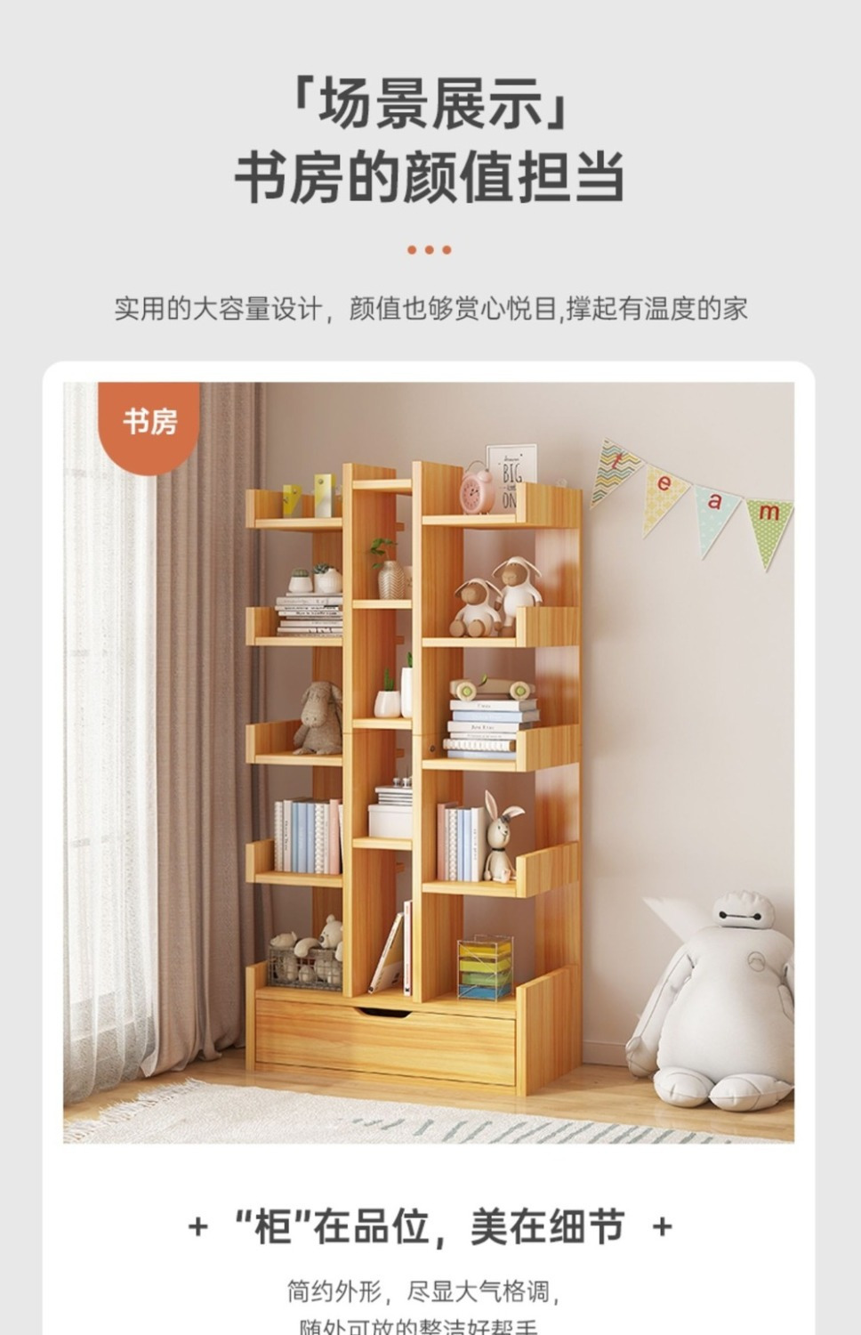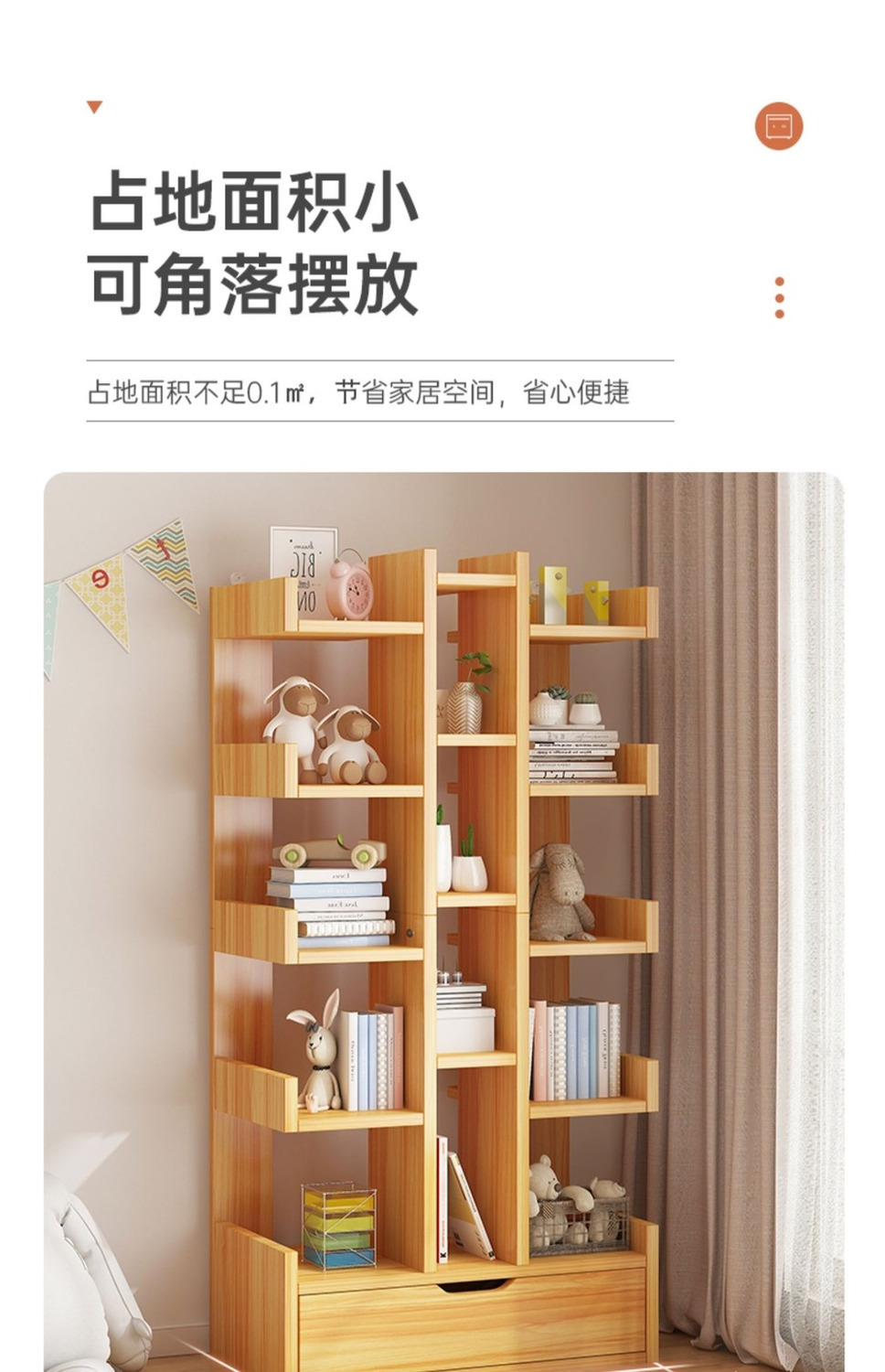 树形书架落地置物架客厅家用靠墙简易儿童绘本收纳架不占空间书柜