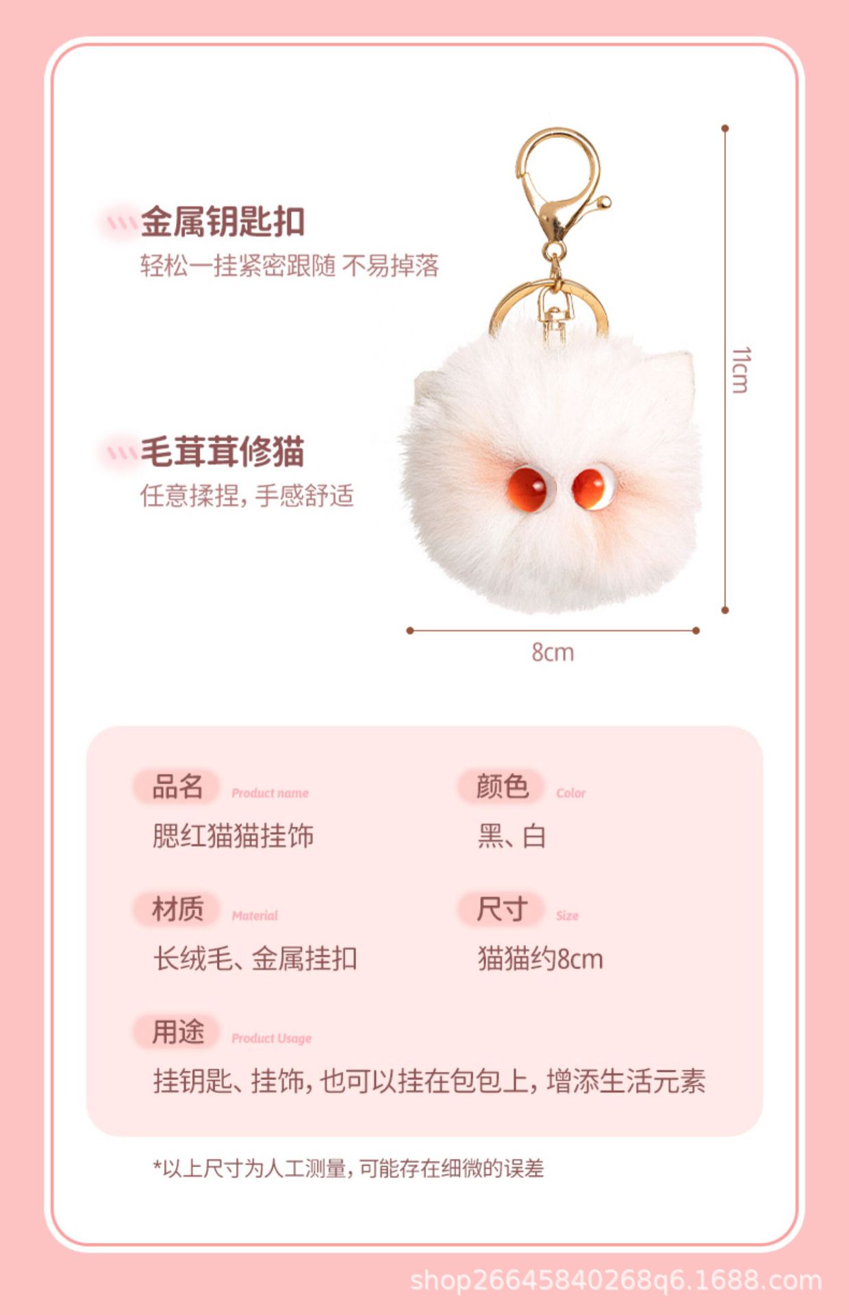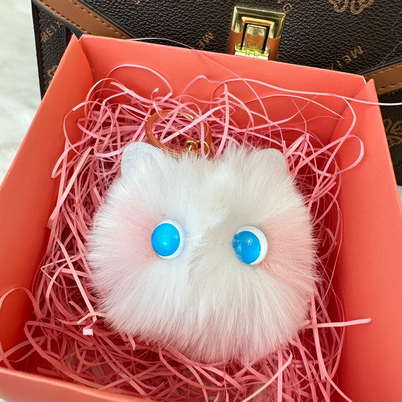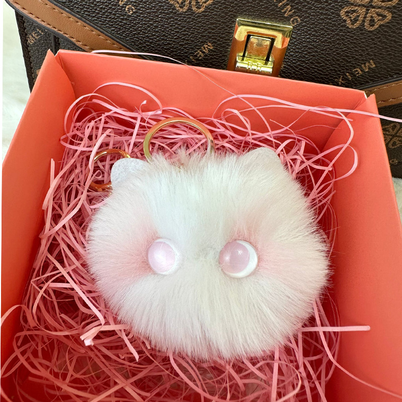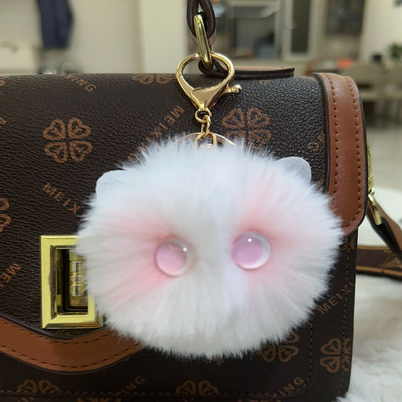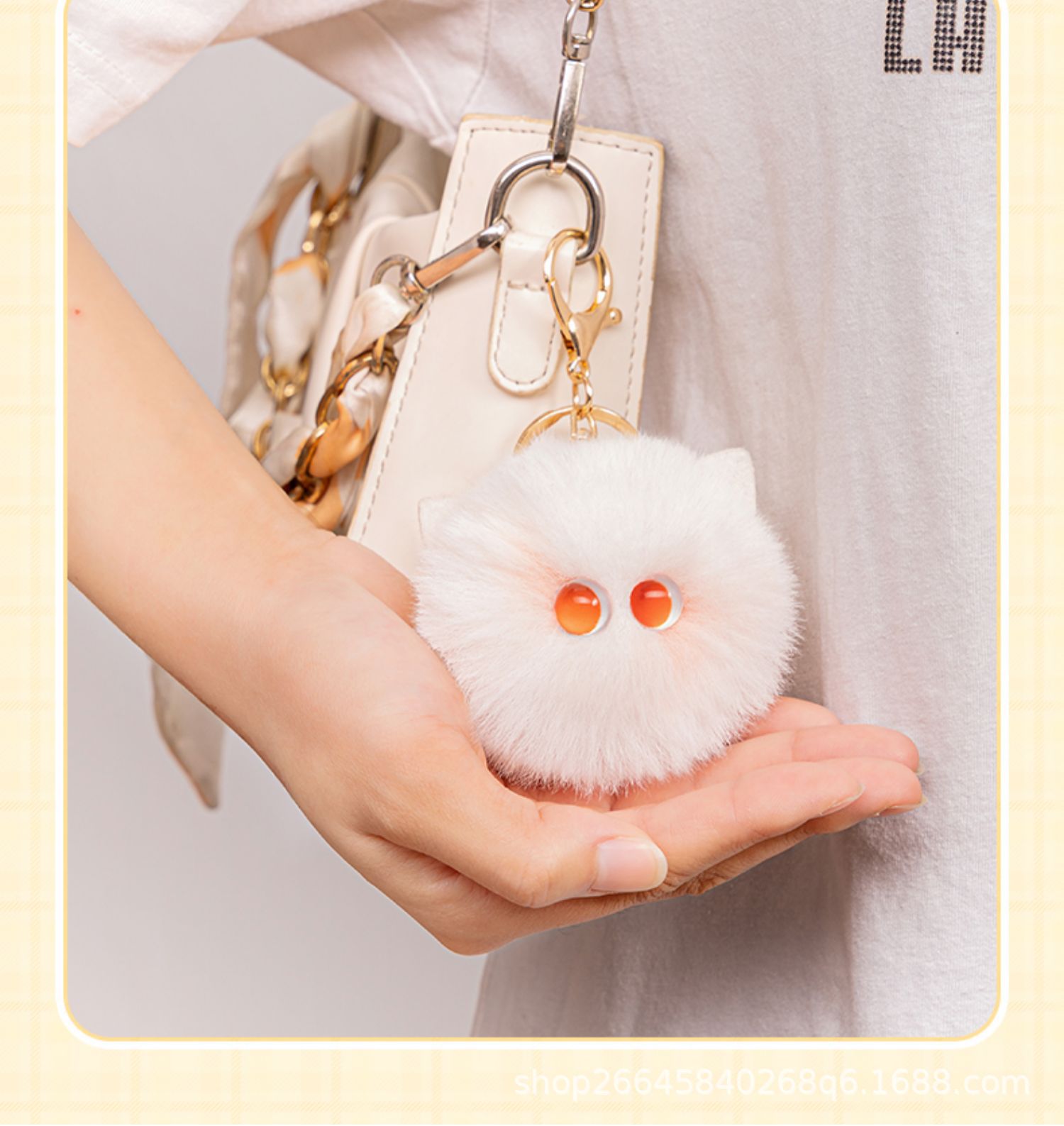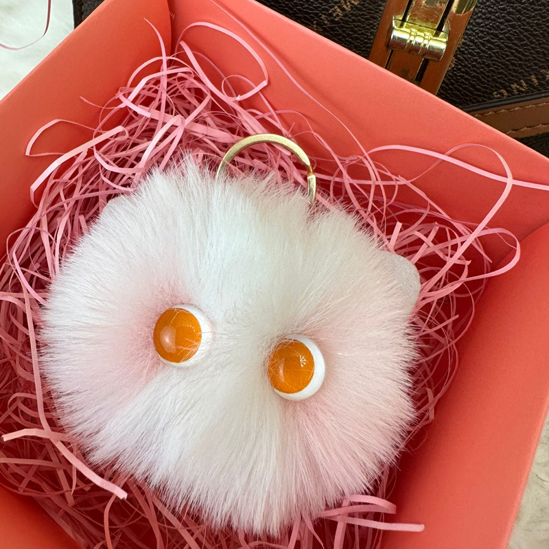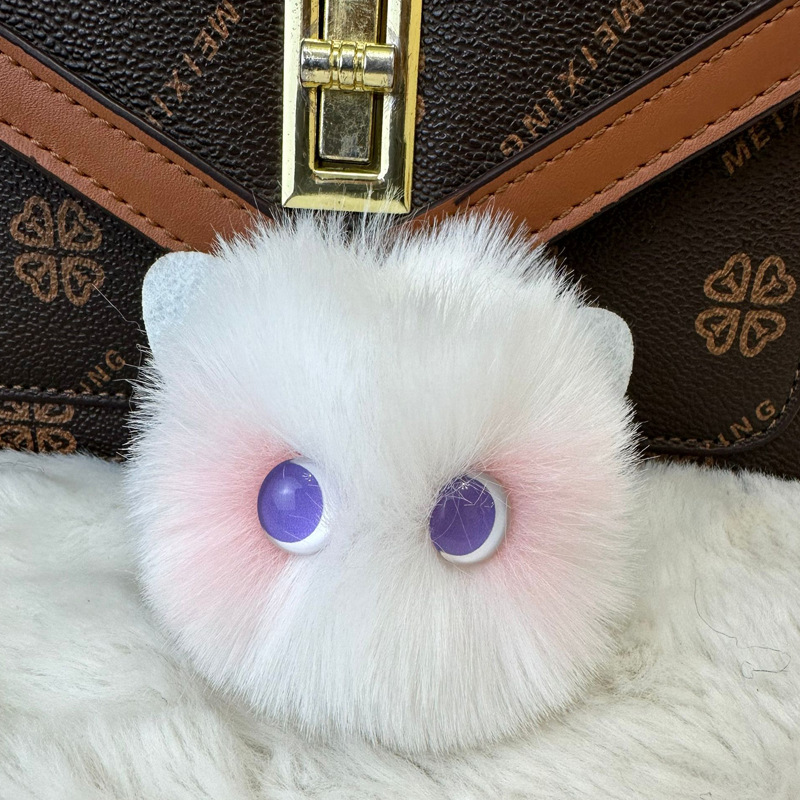 かわいいレッキスラビットの毛皮の小さな石炭球バッグチャーム、ランドセル飾り、目玉人形ペンダント、漫画風おもちゃキーホルダー