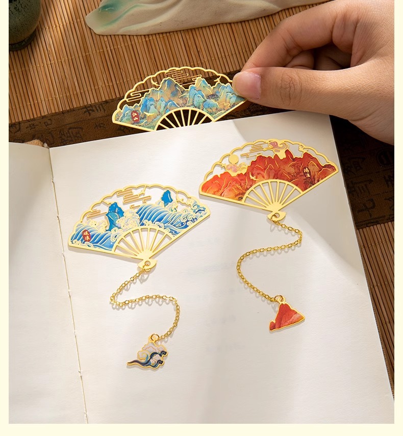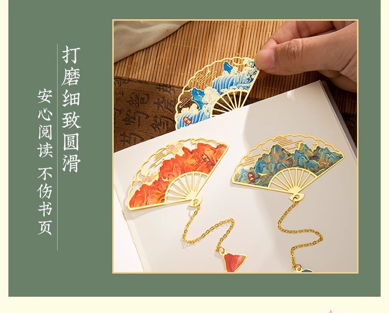 ブックマーク クリエイティブ 古典中国風 金属ブックマーク 真鍮製 中空 学生へのご褒美 小さなギフト 卸売 扇形ブックマーク