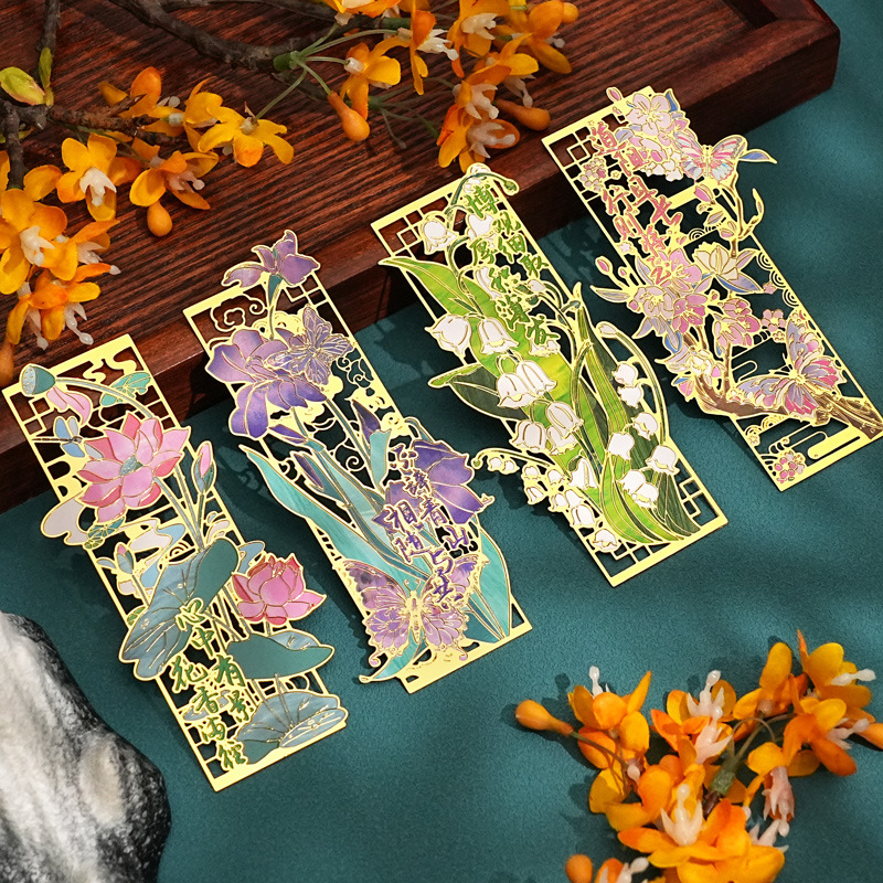 花知处金属书签金属国风复古花卉素材学生老师小礼品阅读金属书签