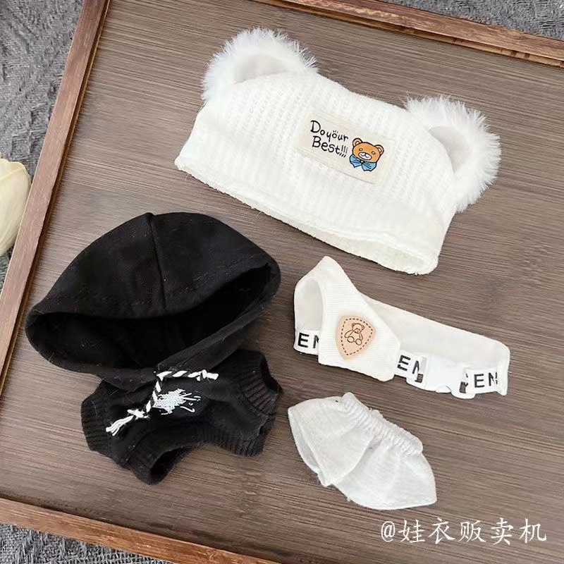 超安い高颜値かわいい白黒メイドセット10cm綿人形スター人形耳麦アクセサリー人形服