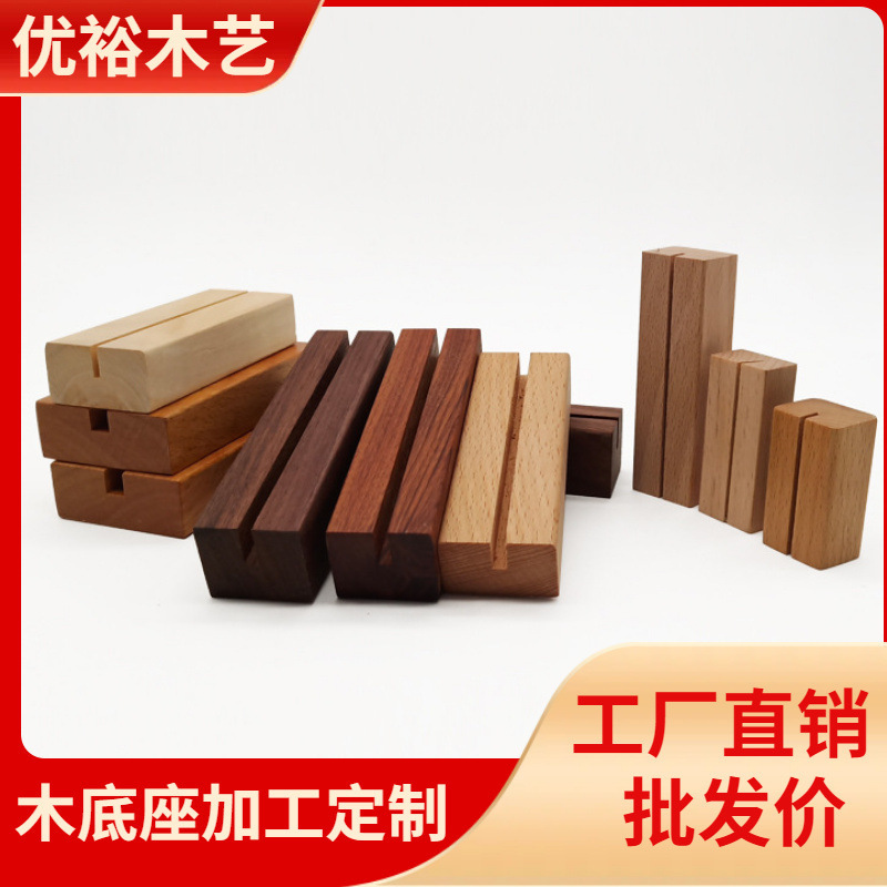 便签夹底座定制 黑胡桃木底座实木底座台历 磨削名片木头底座底托
