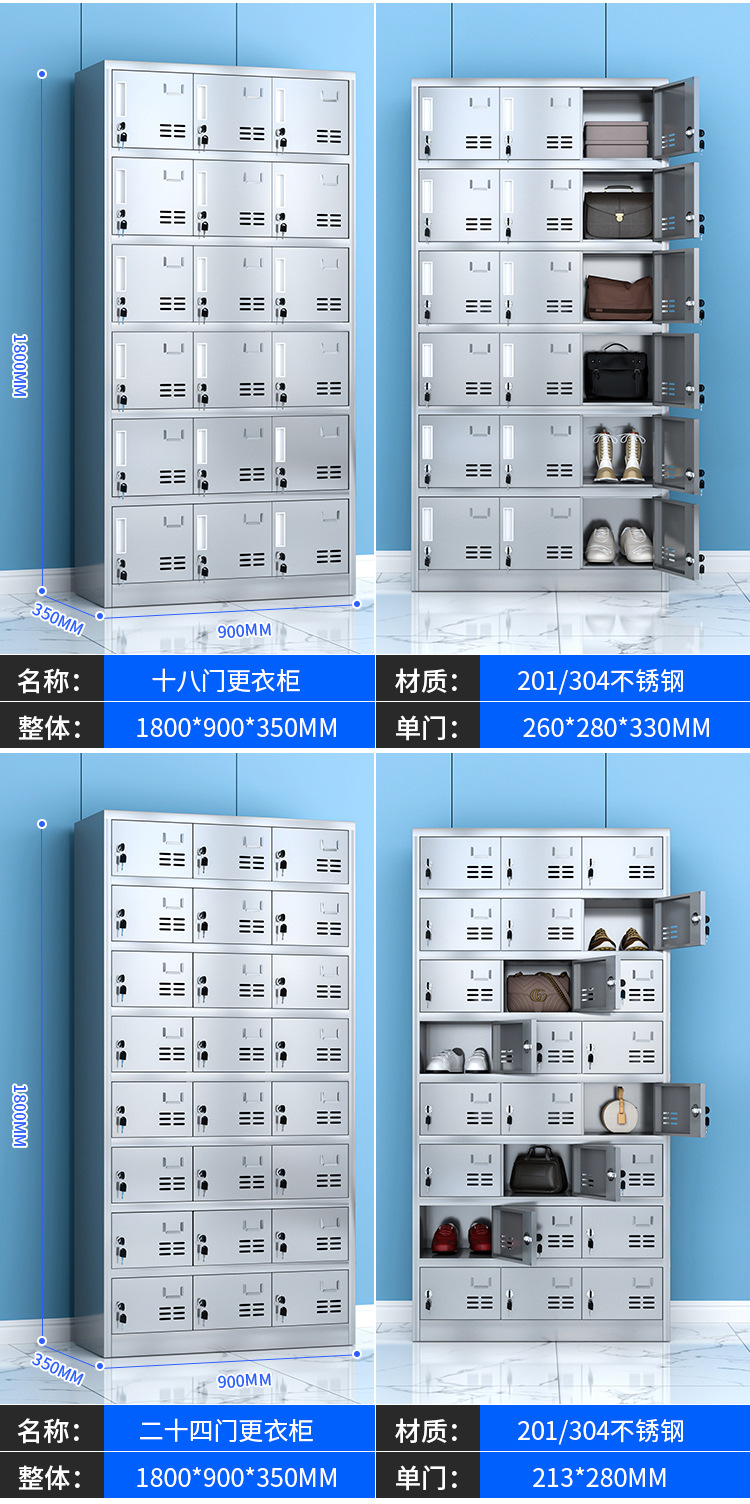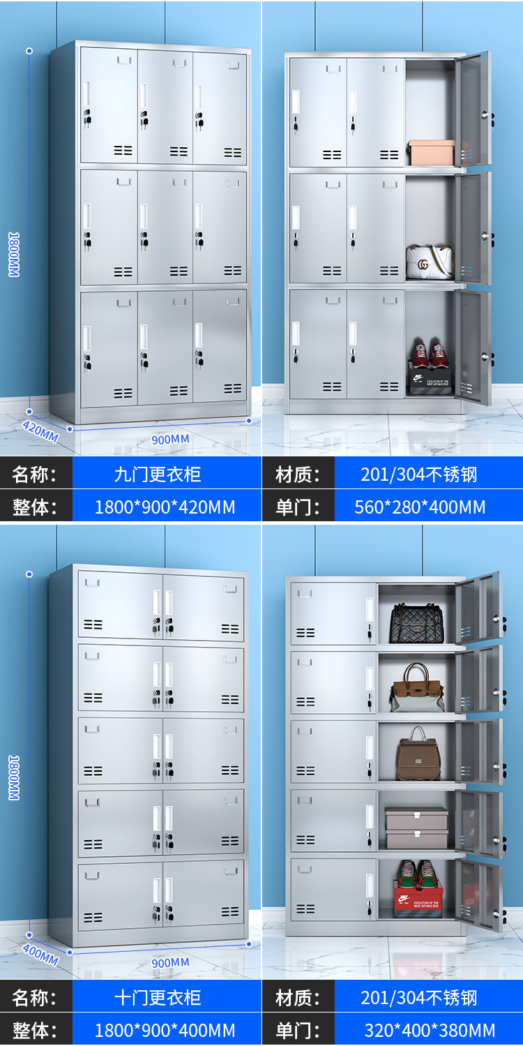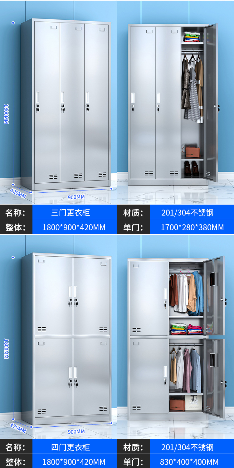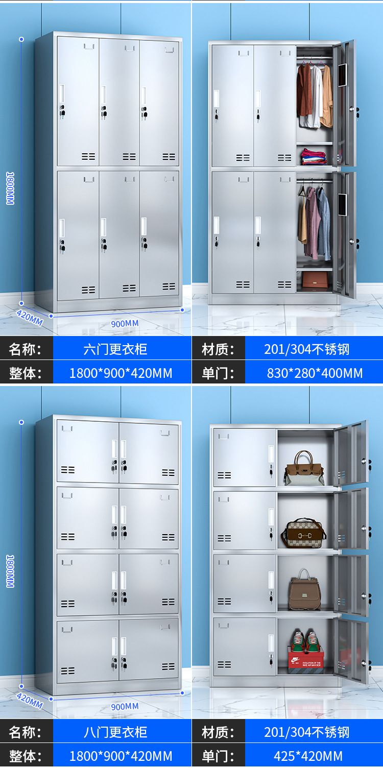 304不锈钢更衣柜工厂车间员工宿舍无尘储物柜食堂多门带锁碗柜