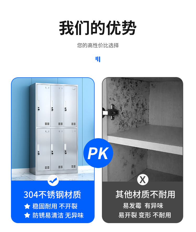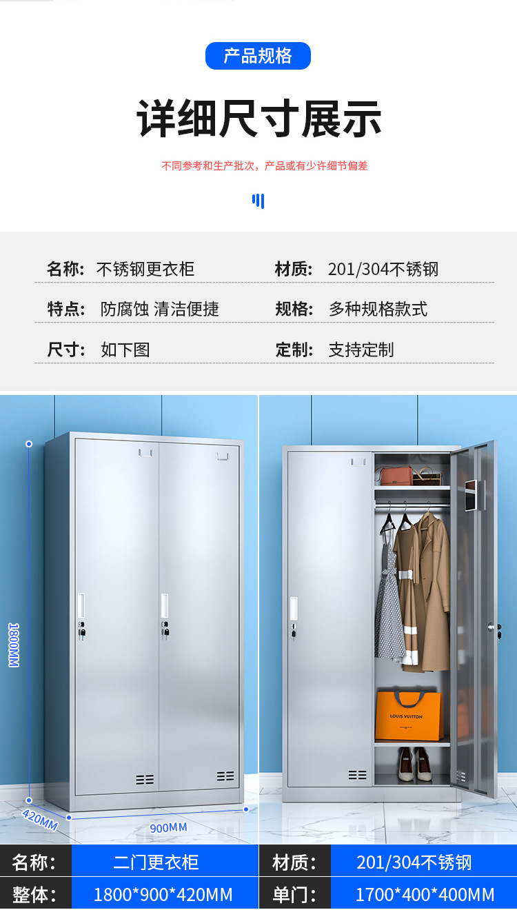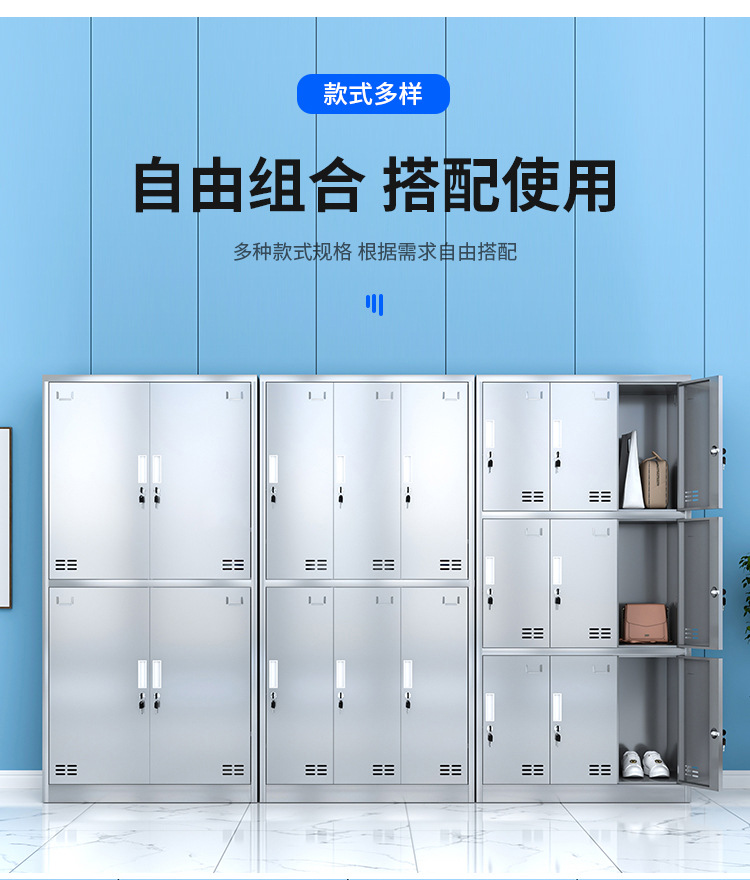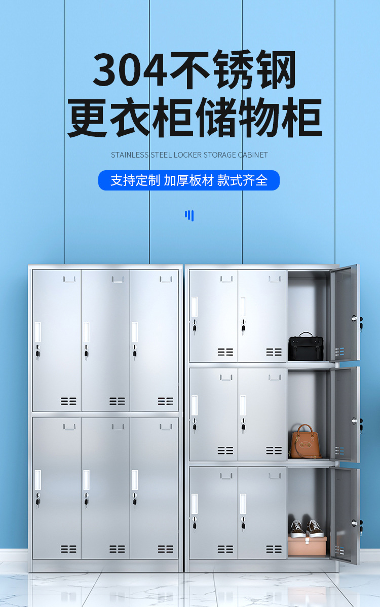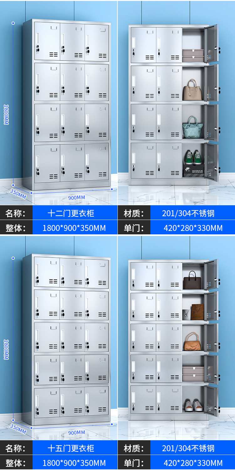 304不锈钢更衣柜工厂车间员工宿舍无尘储物柜食堂多门带锁碗柜