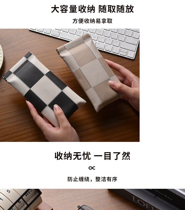 レトロな格子のメガネの袋のサングラスの近視のメガネは携帯の弾性板を収めて自動的にメガネの袋を閉じます。