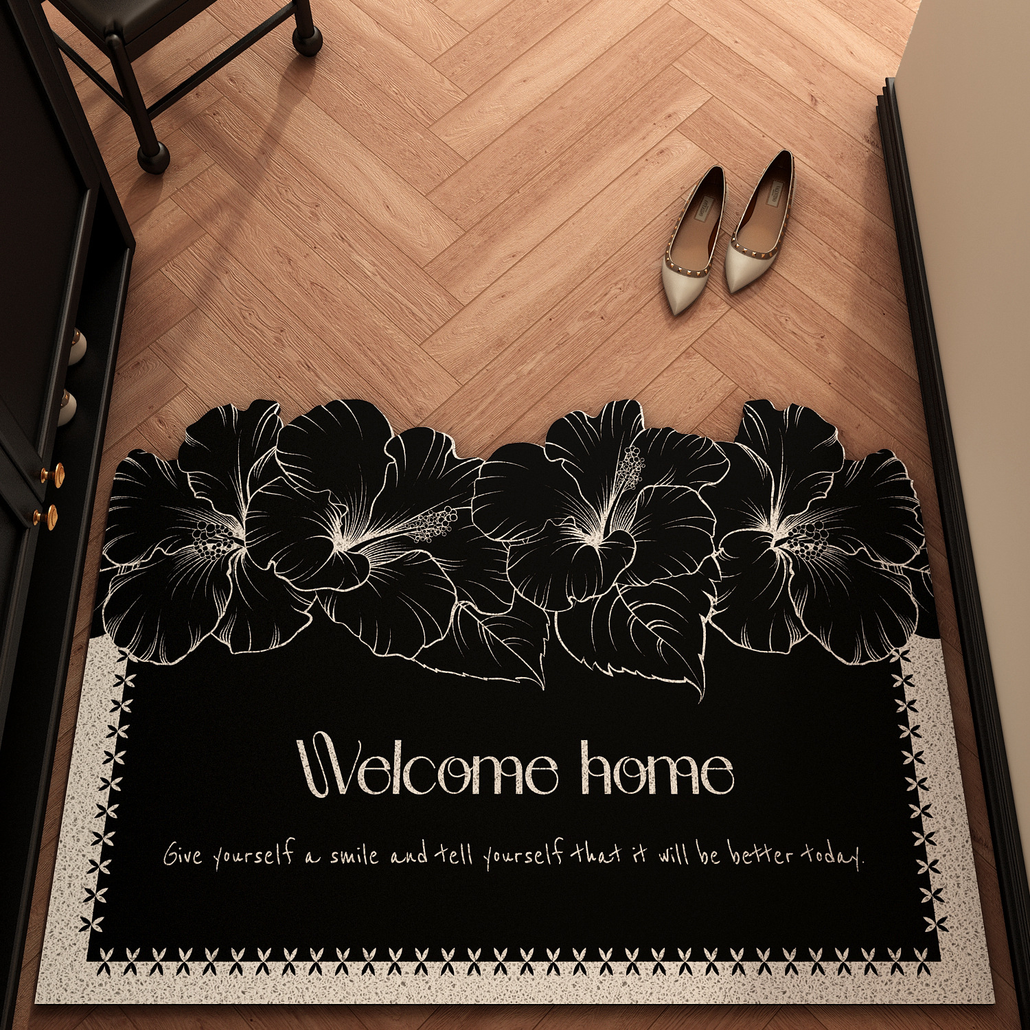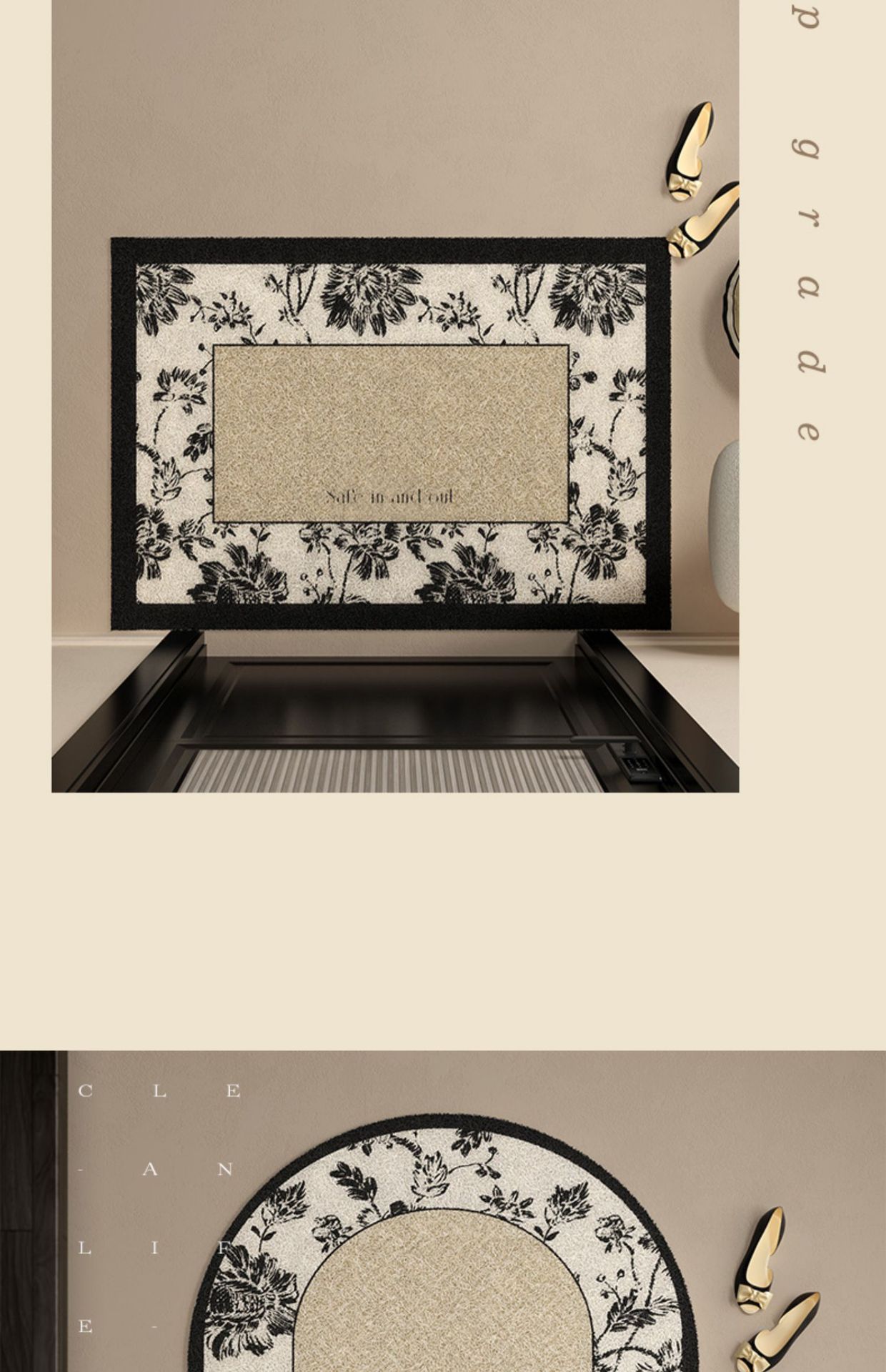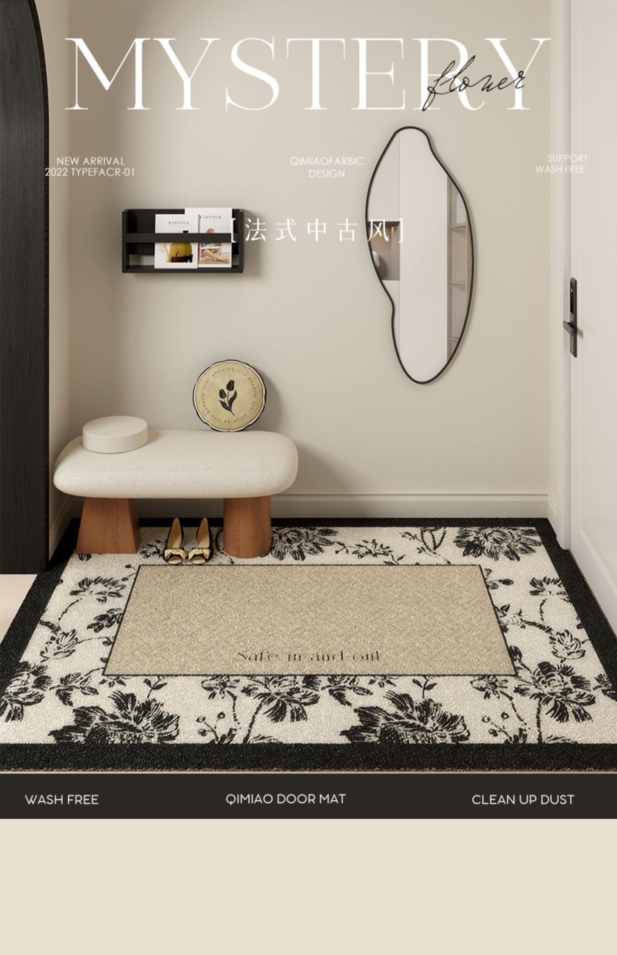 法式复古风入户门地垫家用进门口丝圈脚垫防滑耐脏可裁剪pvc地毯