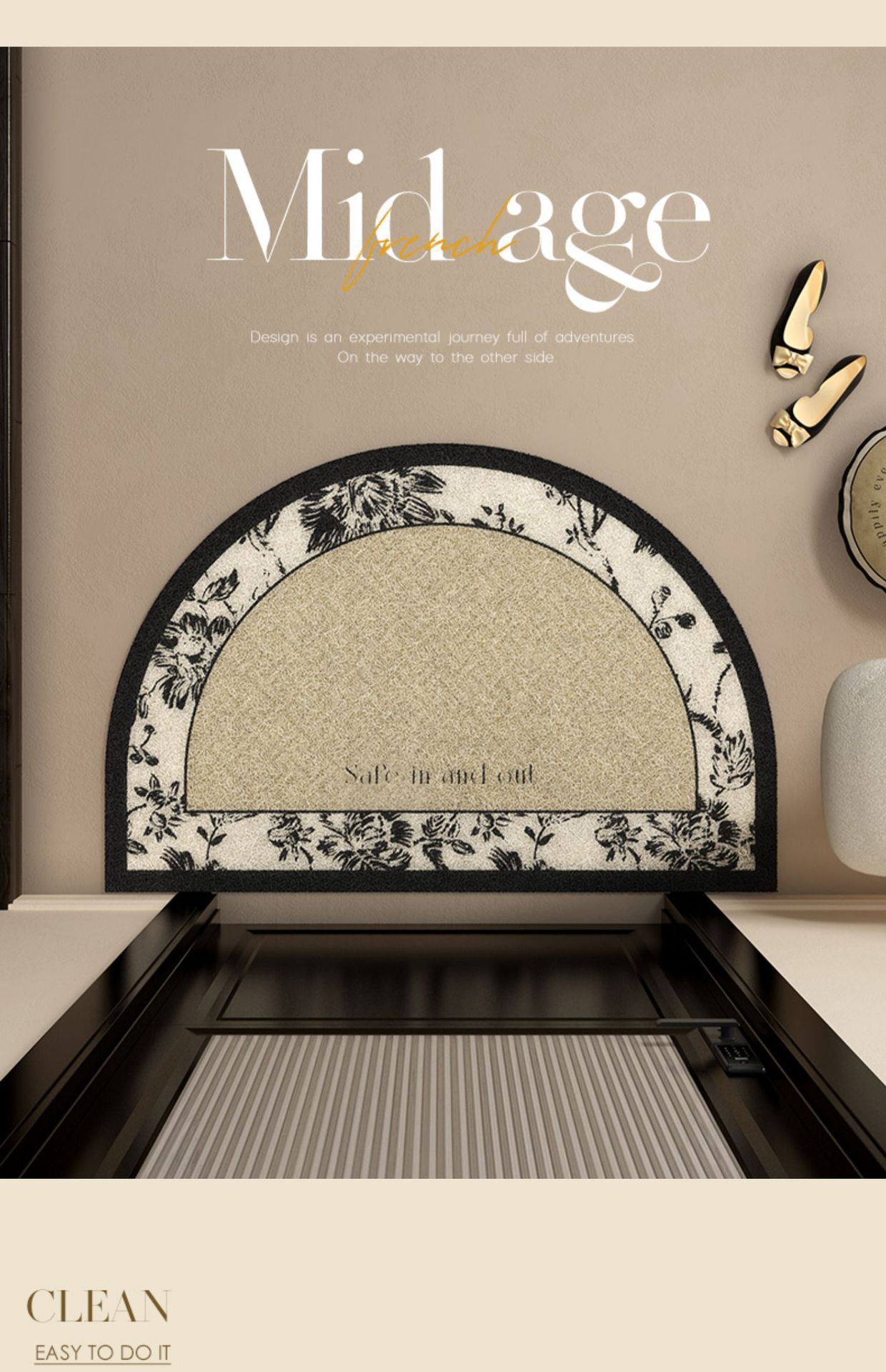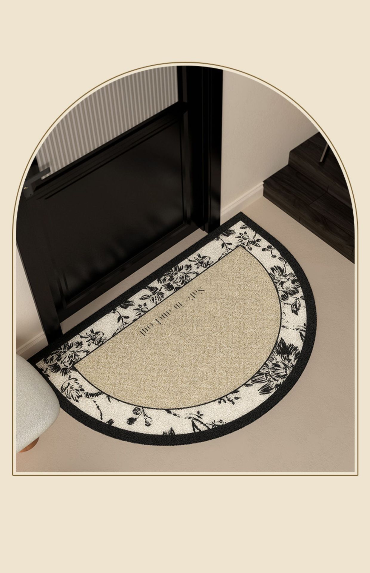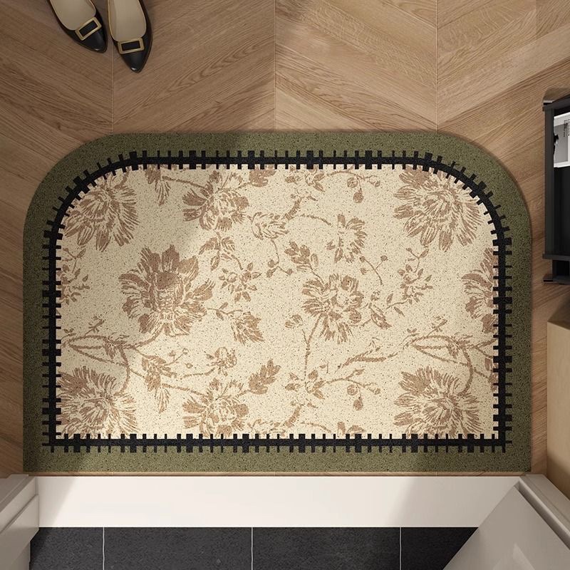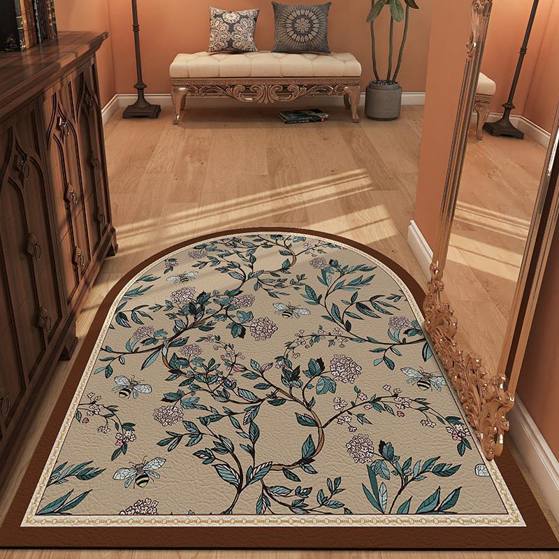 中世スタイルの玄関シルクサークルフロアマット、玄関泥をこするフロアマット、カット可能、汚れにくい、お手入れが簡単、滑り止めマット