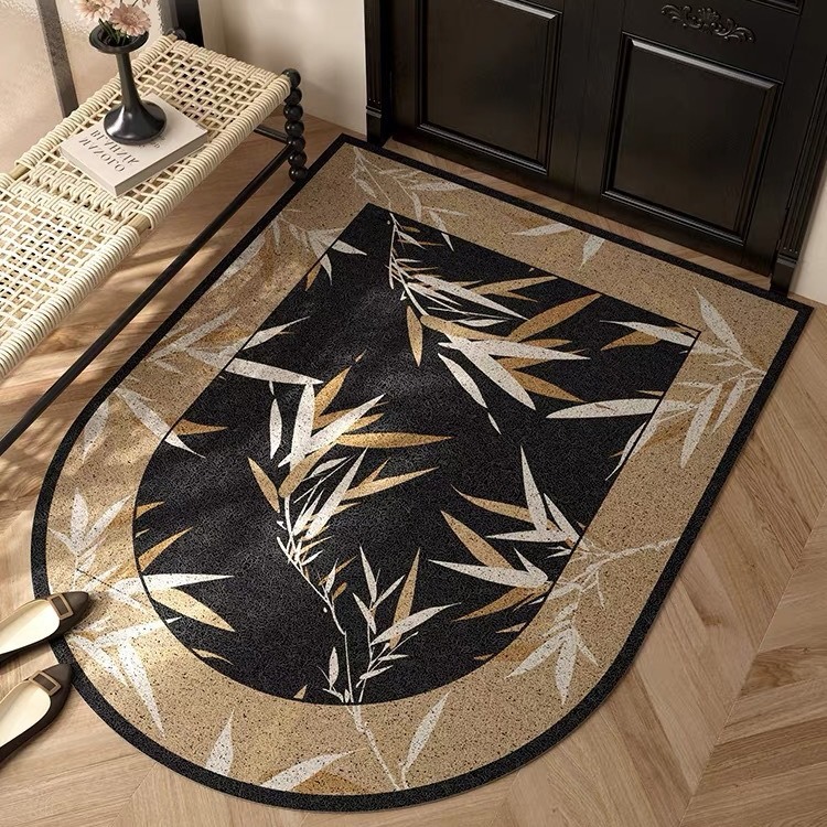 シンプルで高級感のあるシルクサークルフロアマット、アンティークスタイルのホームエントランスマット、玄関ドアの足拭き除塵PVCドアマット