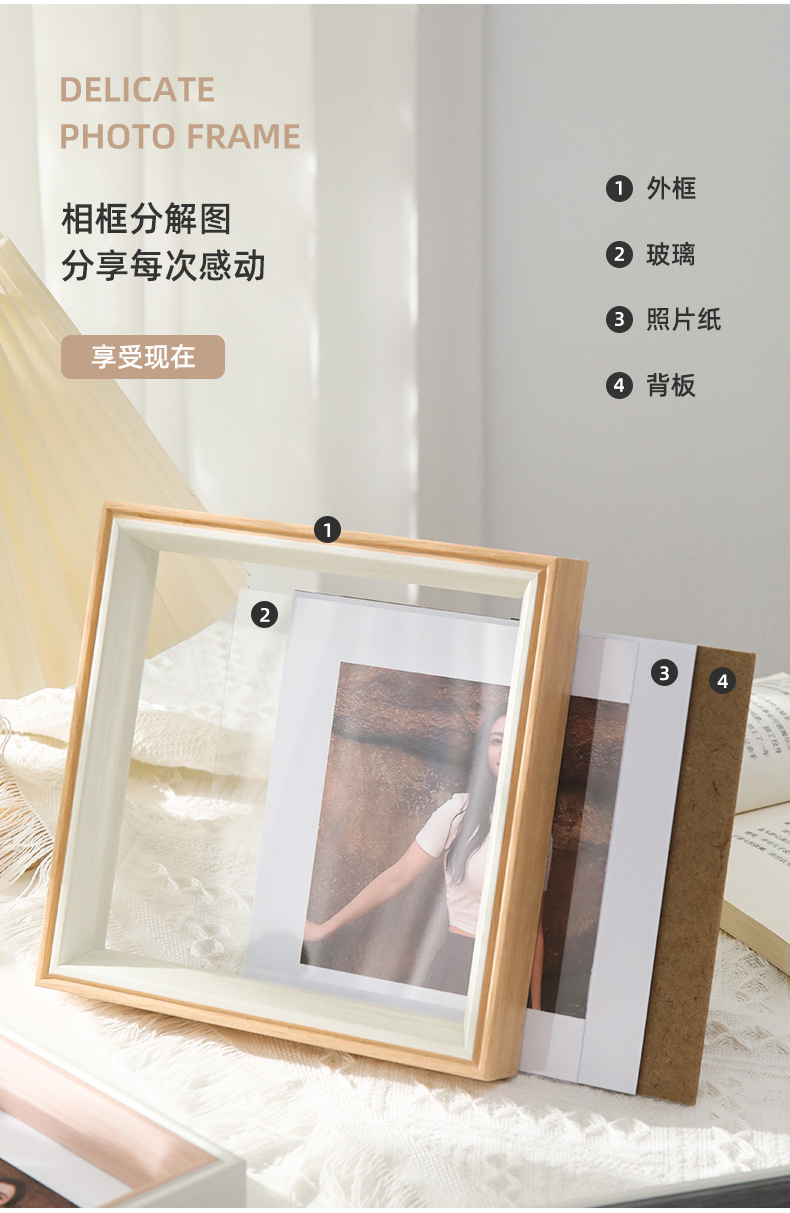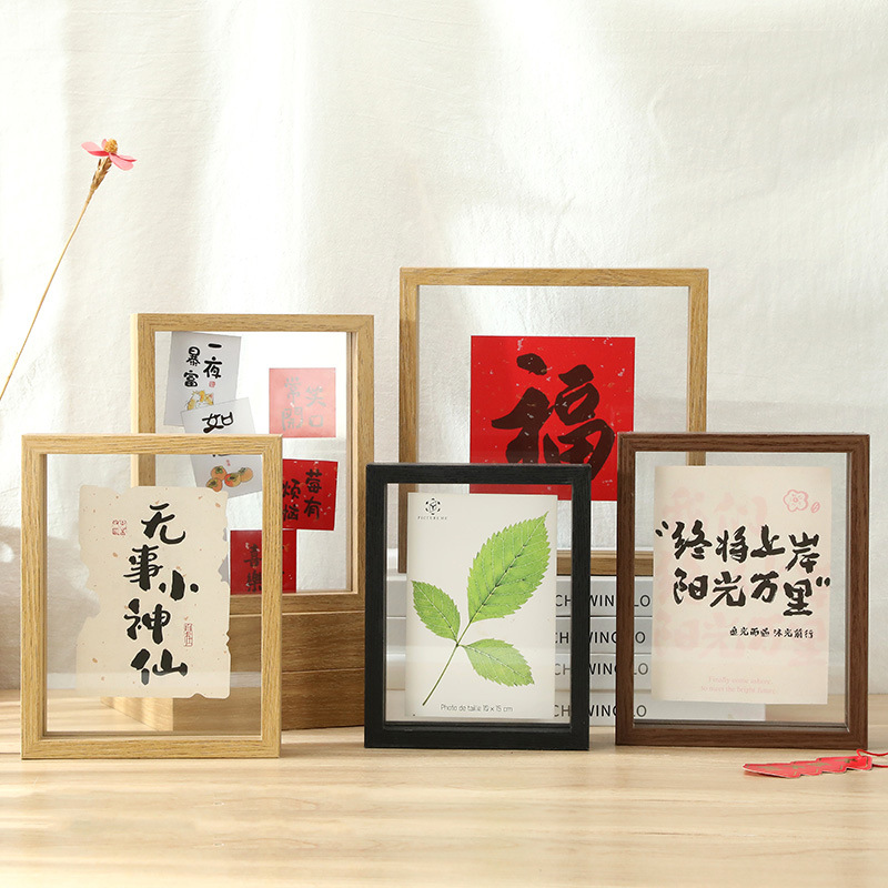 双面玻璃相框摆台文创书法画框摆件木质干花落叶标本6寸相框批发