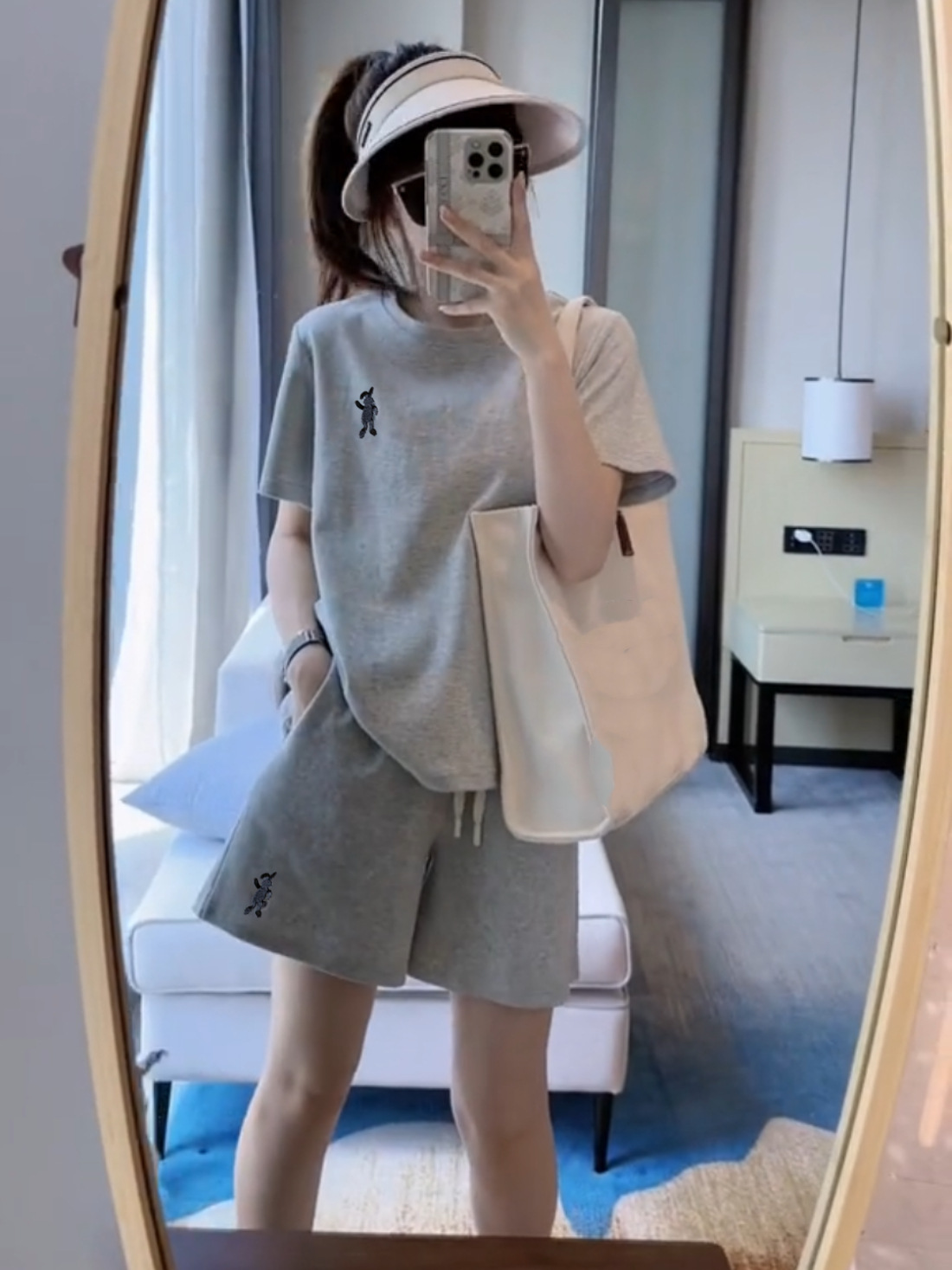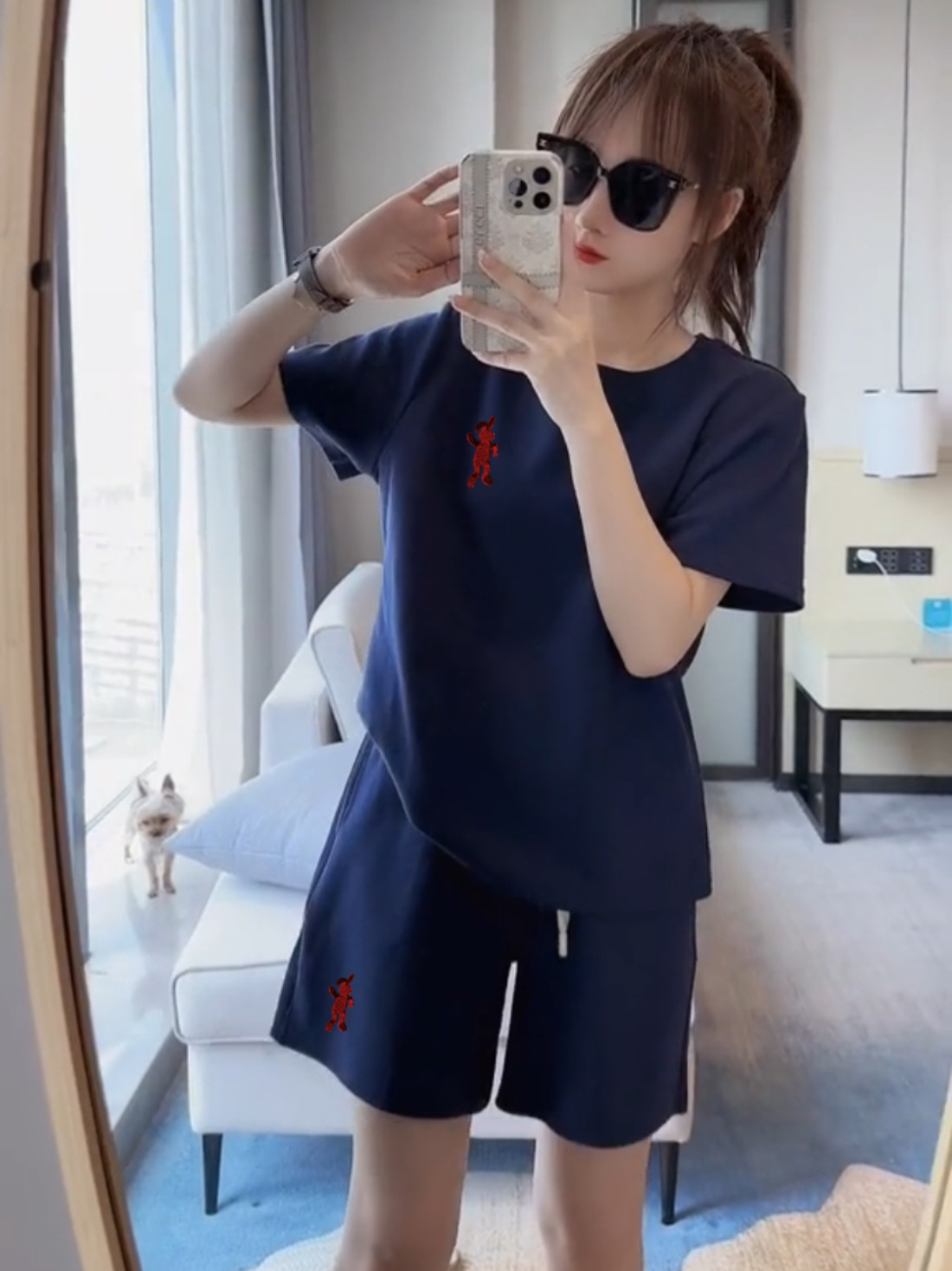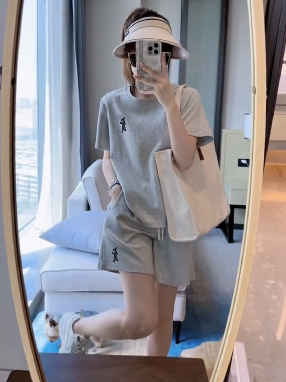 ヨーロッパスポーツスーツ女性の夏の新しいルーズスリム半袖ショーツカジュアル学生ランニングスーツツーピーストレンディセット