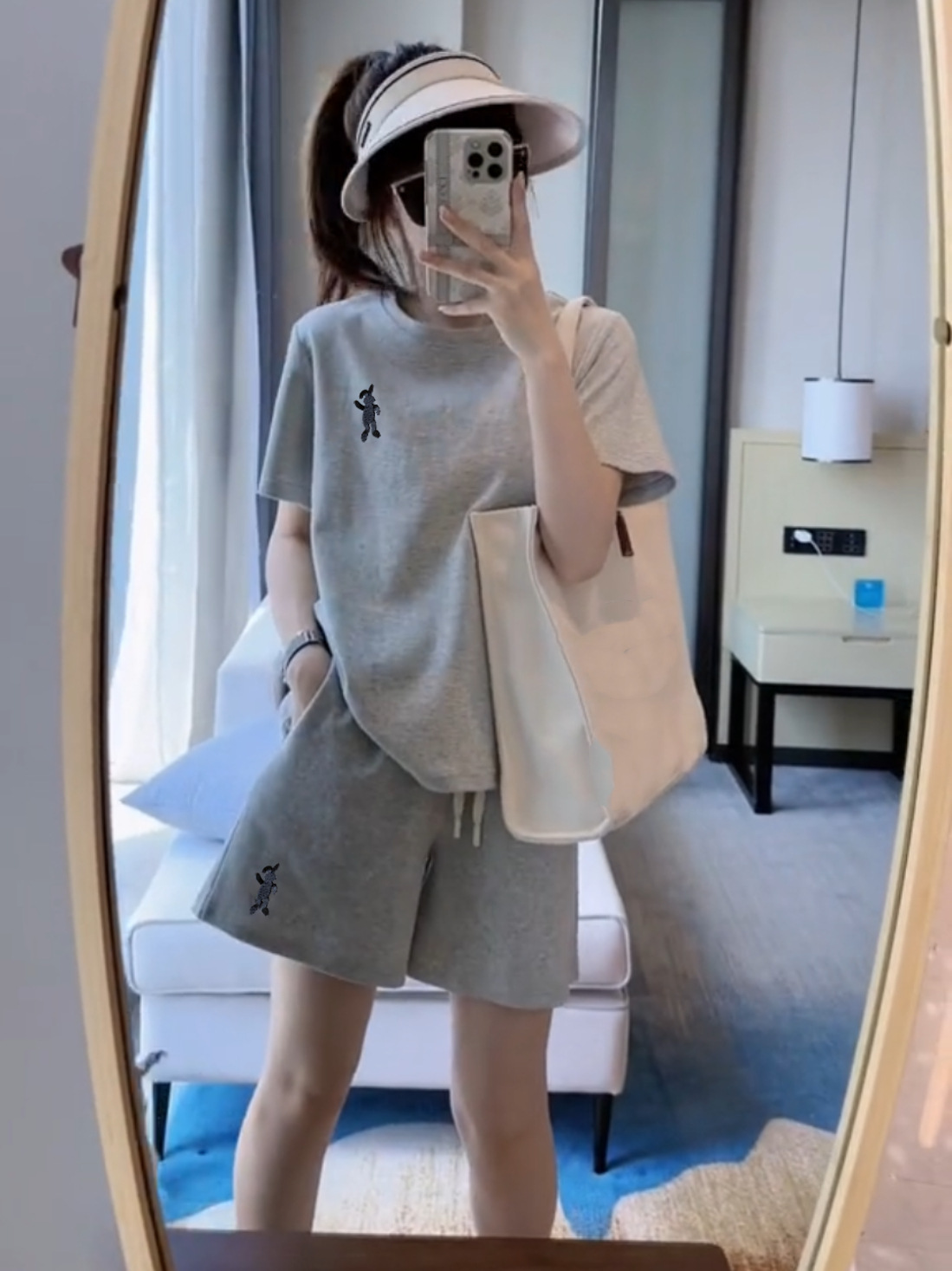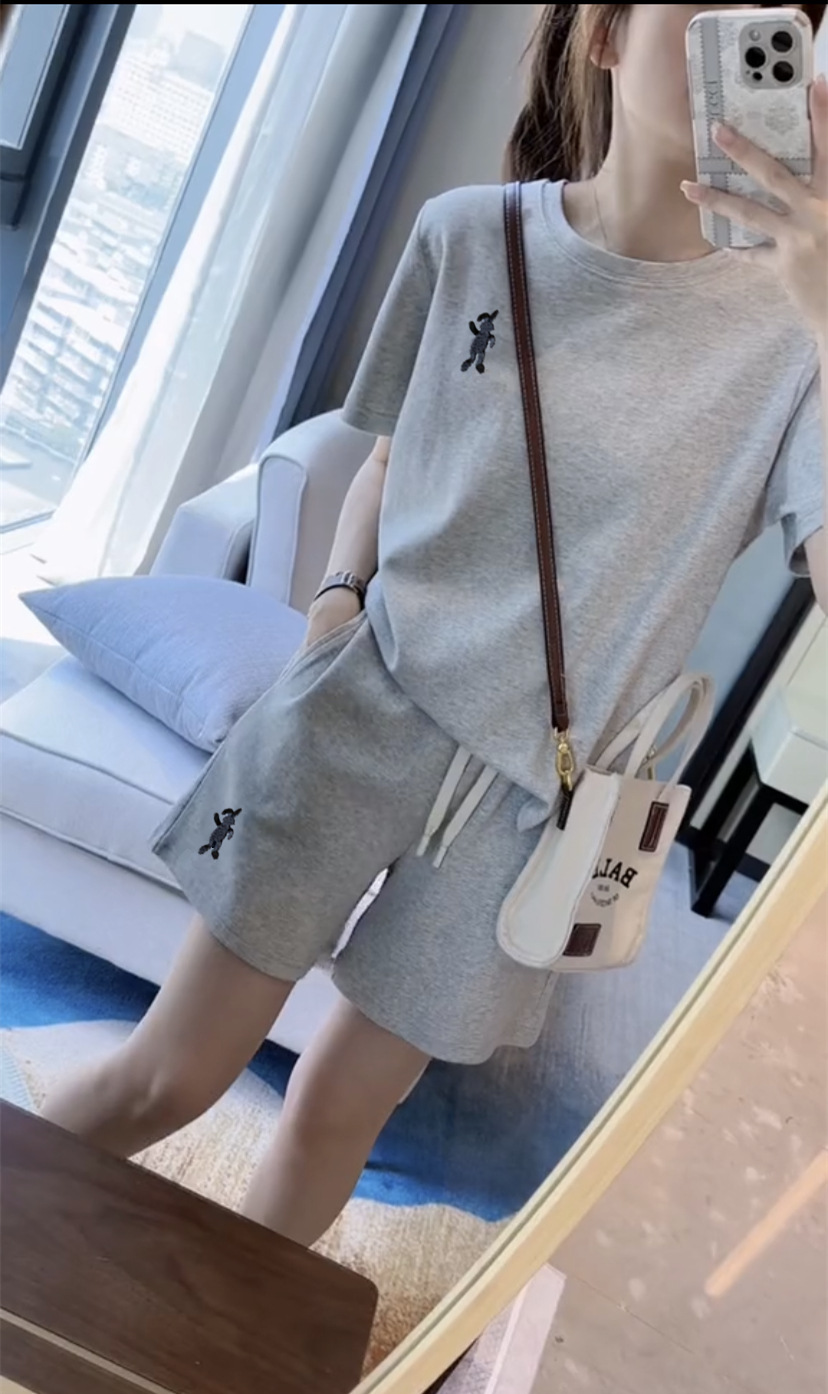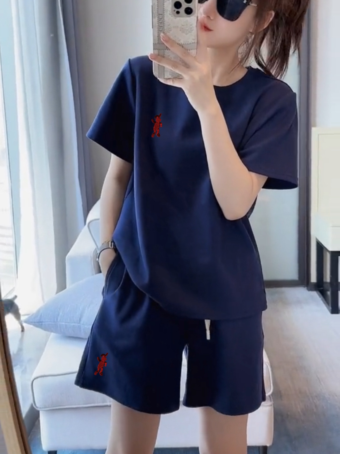 オリジナル品質アマゾン韓国女性の夏ルーズ半袖 Tシャツショーツスポーツ刺繍文字カジュアルスーツ