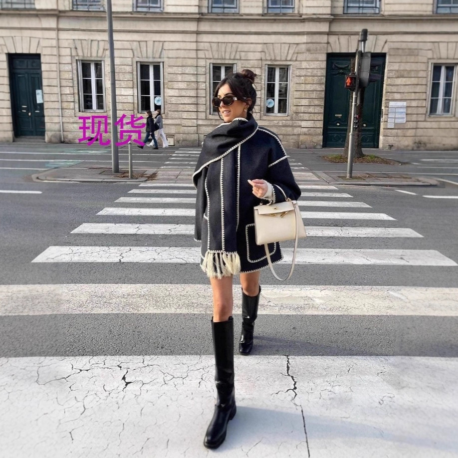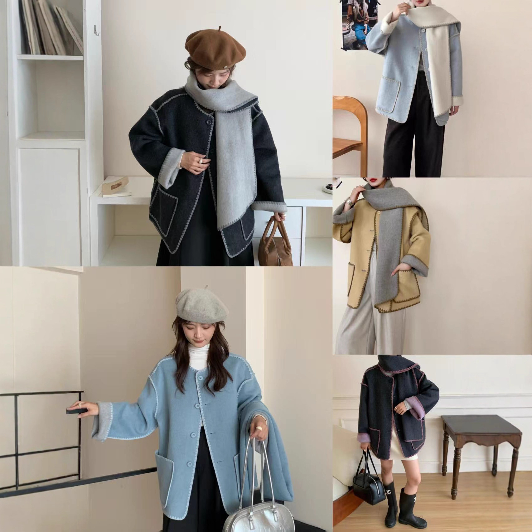 速卖通越境貿易婦人服卸売ニッチスカーフ装飾ステッチゆったりウールコートエレガントな雰囲気