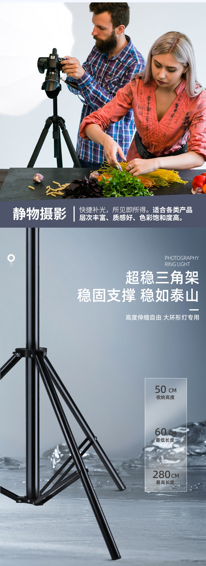 2.8メートル直播灯架スプリング金属撮影灯架フラッシュ放物柔光箱専用三脚