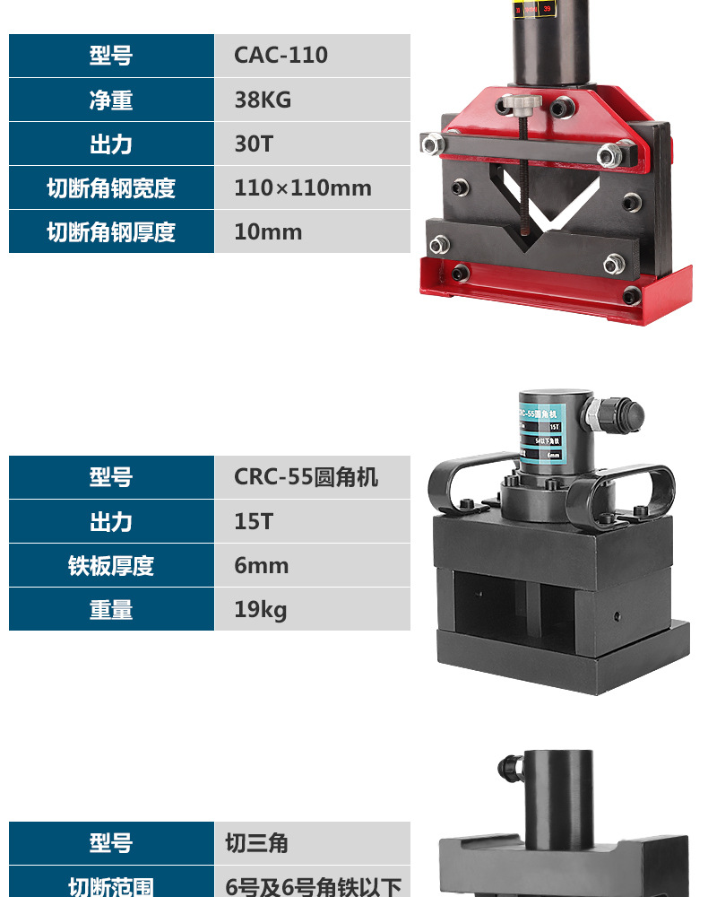 仕様 CH-60L アングル鉄パンチングマシン,三角形切断機,コーナーマシン,CAC-75 アングル鉄切断機,CAC-110 山形鋼切断機,CRC-55 円弧角切断機,CR-50 丸みを帯びた三角形のツーインワン,大型モデルカット三角(厚さ8mm以下),大型モデル折り三角(厚さ8mm以下),DJ-55 ベベルカットとフィレット 2-in-1,DJ-75 フィレット,新型 CAC-756 コンプリートセット(ポンプを除く),CAC-75+コーナーカット+コーナーフォールディング+HHB700A,切断、コーナーカット、折り曲げ、パンチングを一体化した4in1マシン,切断・コーナー・パンチングを一体化したスリーインワンマシン,HHB-700 ソレノイドバルブポンプ,QQ-700 電動ポンプ,さらに多くの機能を組み合わせることができます。相談についてはカスタマーサービスにお問い合わせください。