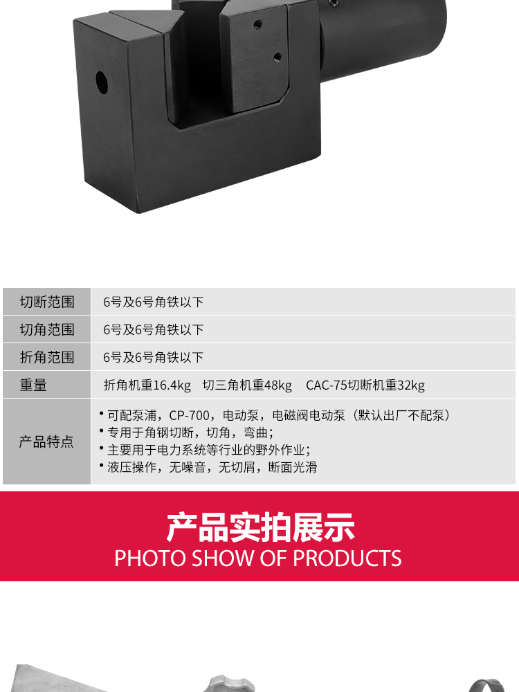 分体式アングルカッターCAC-75/110油圧電動アングル切断機切断機切断機